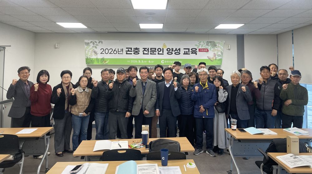 춘천시(시장 육동한)는 3월 3일 춘천시농업기술센터에서 ‘2026년 곤충 전문인 양성 교육(기초과정)’ 개강식을 열고 곤충산업 전문인력 양성에 나섰다.