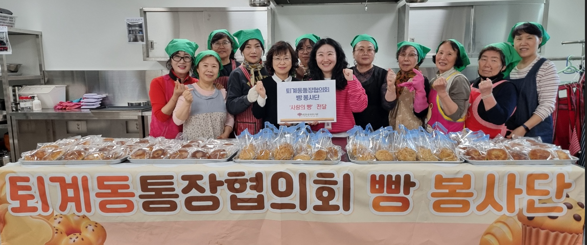 퇴계동 통장협의회 빵봉사단(퇴계동통장협의회장 고청자)은 지난 7일 퇴계동행정복지센터에서 직접 만든 팥빵, 소보루빵 200개를 춘천종합사회복지관에 전달했다.