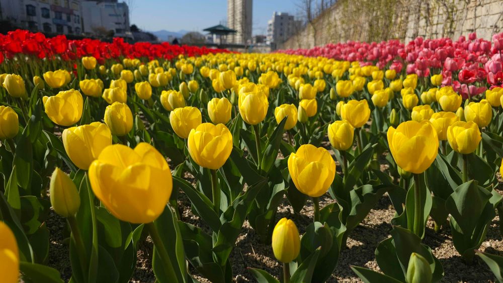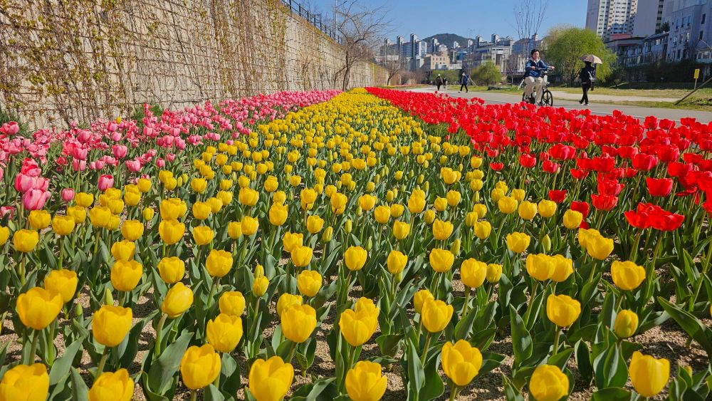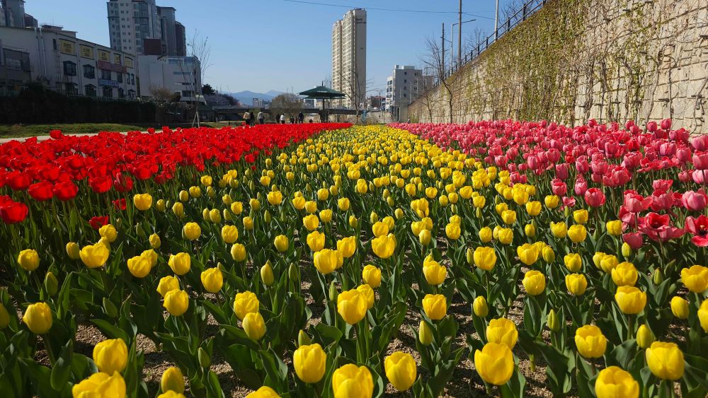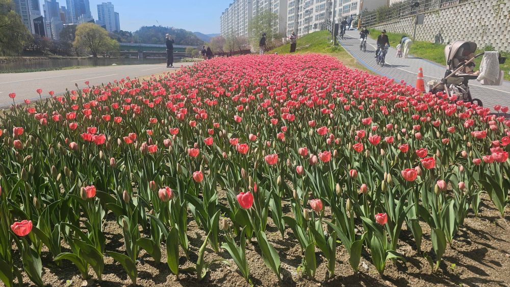 춘천 공지천 튤립 활짝, 산책로 따라 봄 절정
