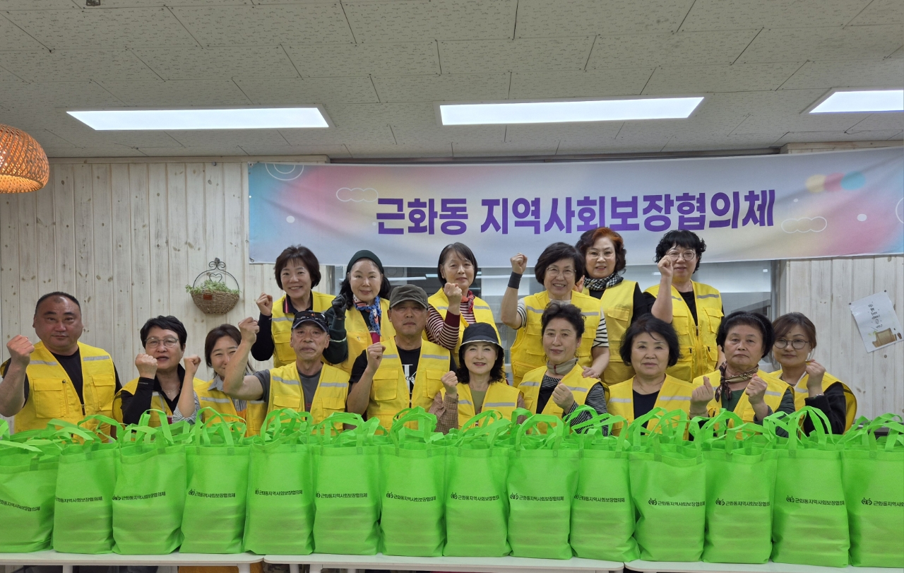 근화동 지역사회보장협의체(회장 박근홍)는 17일 직접 만든 반찬 4종(두루치기, 콩자반, 마늘쫑무침, 김치)을 동네 취약계층 50가구에 전달했다.