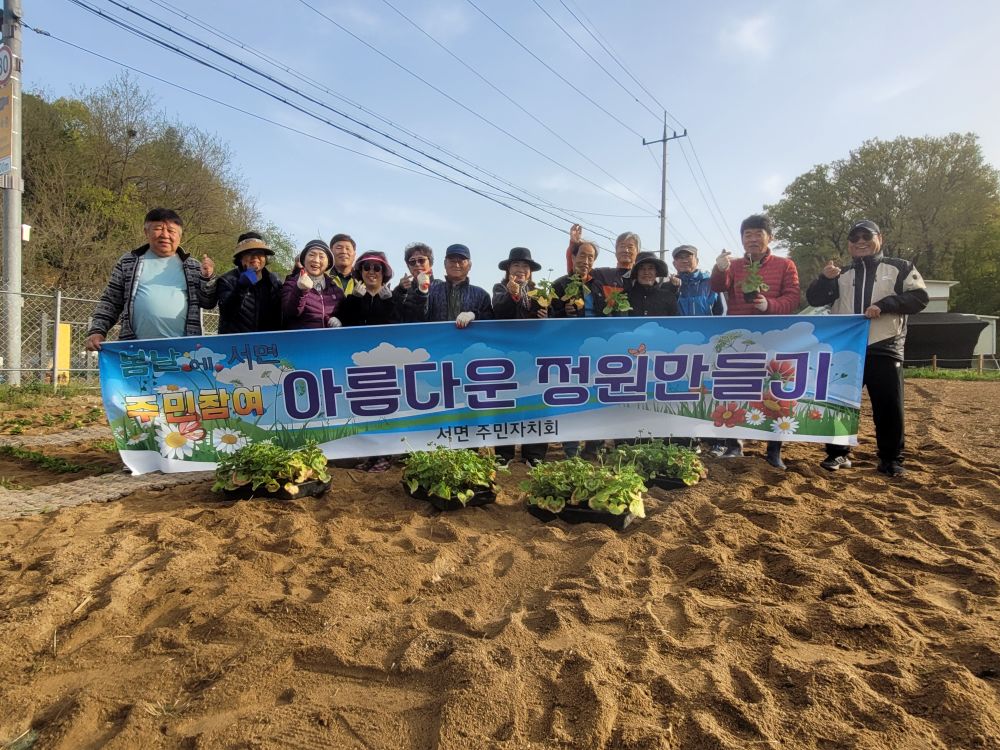 춘천시 서면 주민자치회(회장 유대식)는 지난 21일 오전, 서면 금산리 일원 유휴지에서 ‘봄날에 서면 정원 만들기’ 사업의 일환으로 꽃묘 1,000본을 식재했다.