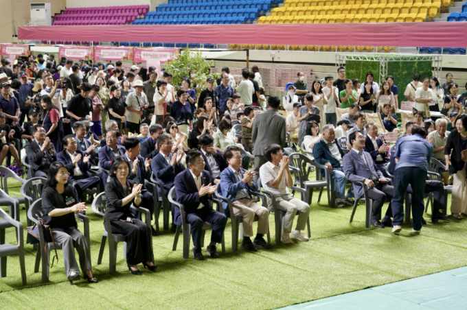 이후 ‘매직트리 퍼포먼스’에 직접 참여해 도열한 내빈들과 함께 복숭아 나무 조형물에 물을 주며 꽃을 피워내는 상징적 개막 퍼포먼스를 선보였고, 행사 마지막에는 경품 추첨에도 직접 나서 시민들과 소통하며 축제 열기를 더했다.