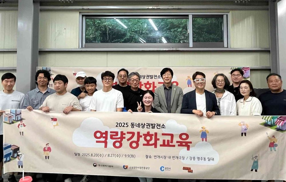 춘천시(시장 육동한)는 20일 번개시장 내 번개극장에서 ‘2025 동네상권 발전소 역량강화 교육’ 첫 강연을 열고 지역 골목상권 활성화에 본격적으로 나섰다. 이날 교육에는 지역 상인과 주민 등 30여 명이 참여해 춘천의 관광·문화적 자원을 활용한 상권 활성화 전략을 모색했다.