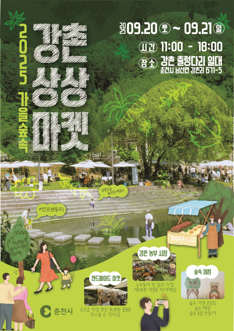 아이 손잡고 떠나는 가을 나들이 ‘강촌 상상마켓’ - 20~21일, 강촌 출렁다리서 펼쳐지는 축제 - 청년 작가·강촌 농부가 함께하는 특별한 플리마켓 - 버스킹·체험 프로그램으로 가족 모두가 즐기는 축제 |