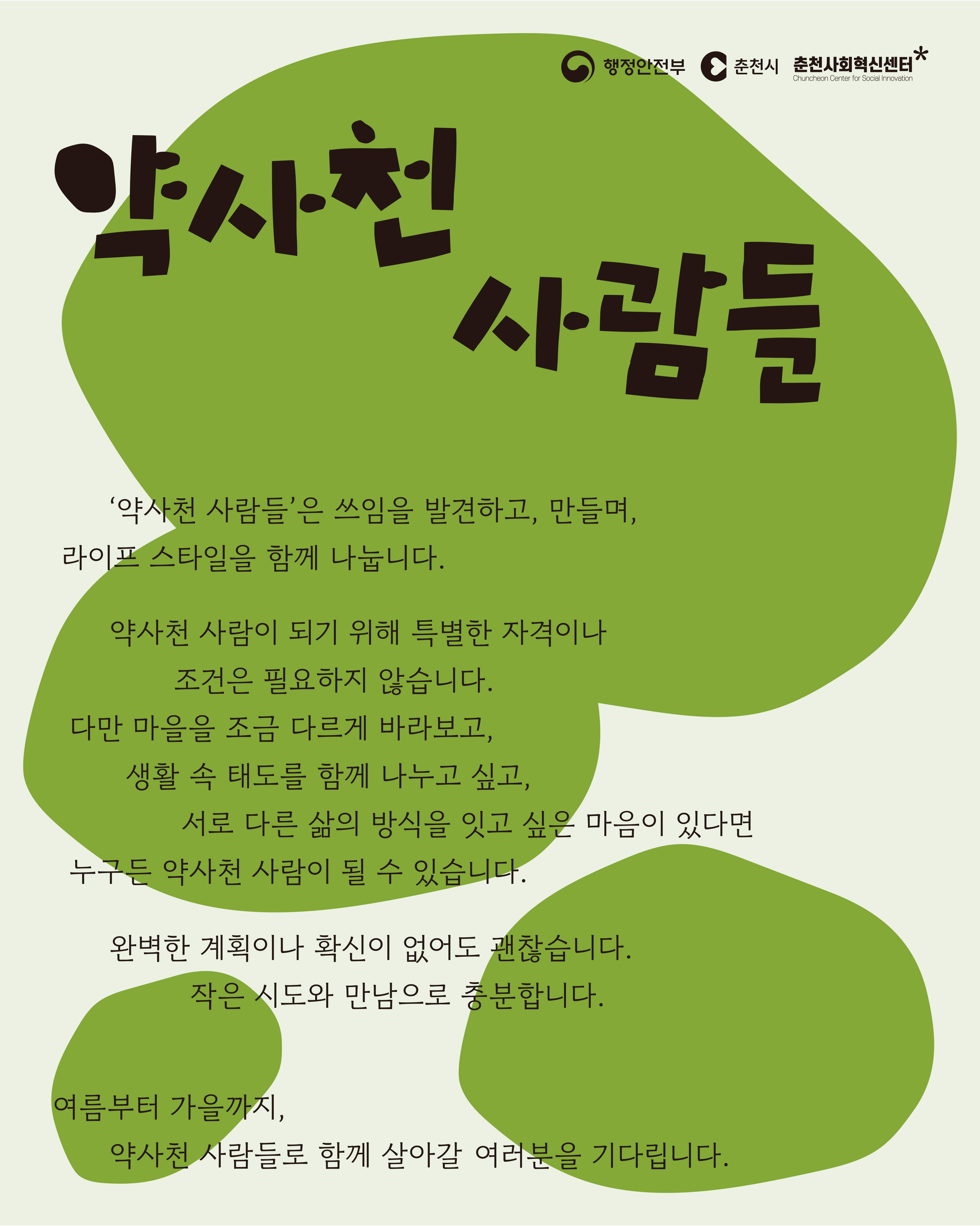 자세한 사항은 춘천사회혁신센터 지역협력팀(033-912-5002)으로 문의하면 된다.