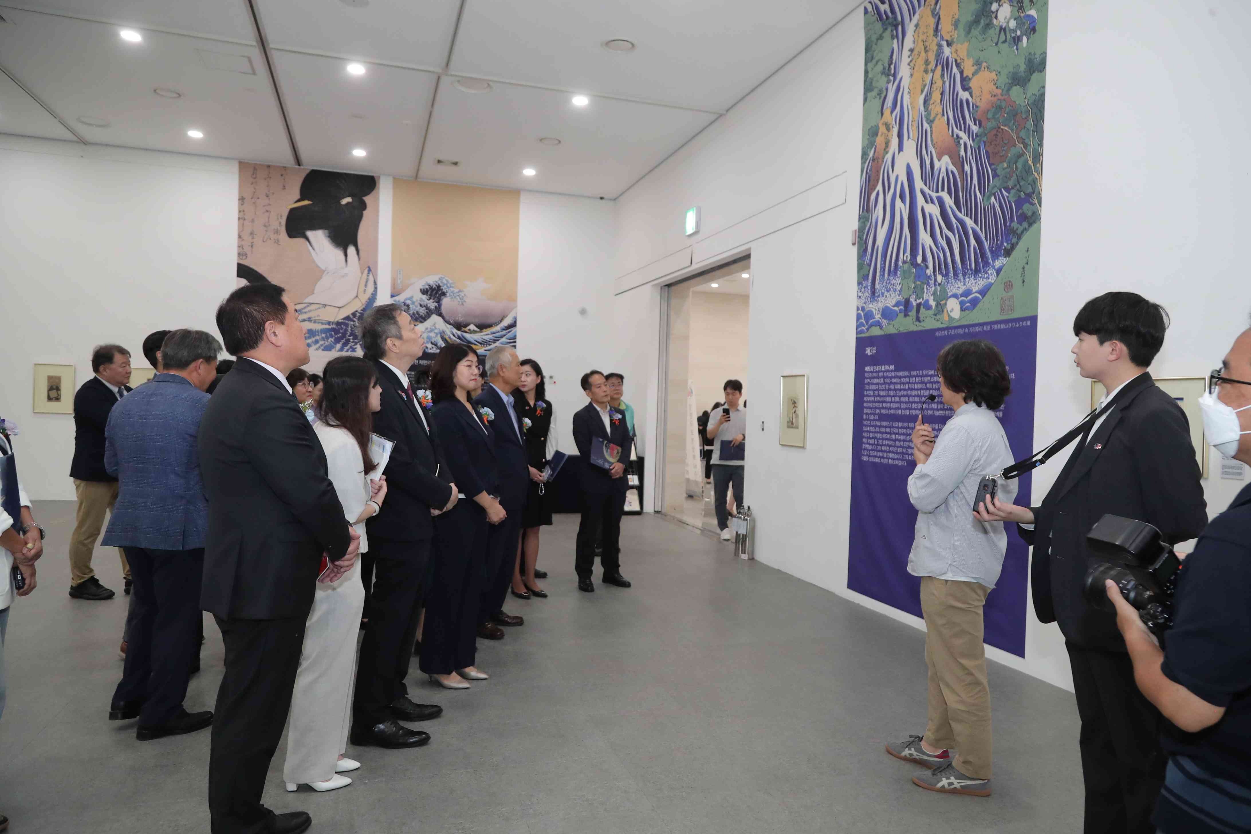 개막공연으로 춘천시립국악단이 민요 무대를 선보였으며, 일본 돗토리현의 샹샹가사오도리 공연이 이어져 분위기를 돋웠다. 테이프 커팅 이후에는 우키요에 특별전 해설, 리셉션 등이 이어졌다.