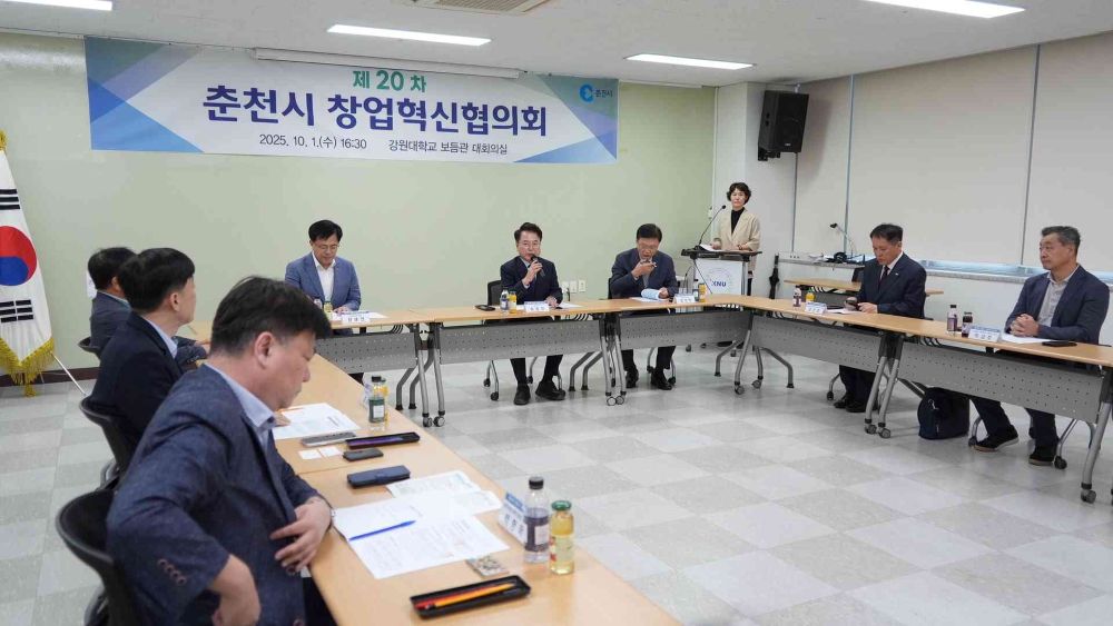 춘천시가 1일 강원대 보듬관 대회의실에서 정재연 강원대 총장, 한림대 최양희 총장을 비롯한 14개 지역내 유관기관 관계자들이 참석한 가운데 제20차 춘천시 창업혁신협의회를 개최했다.