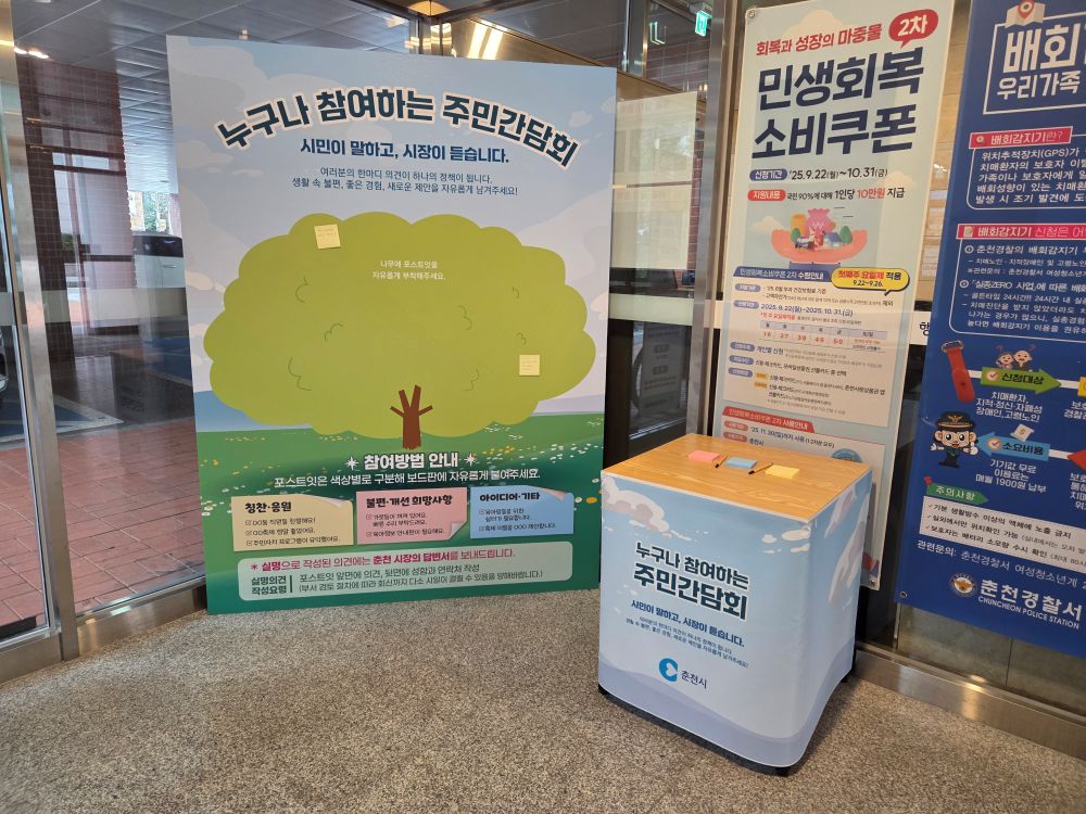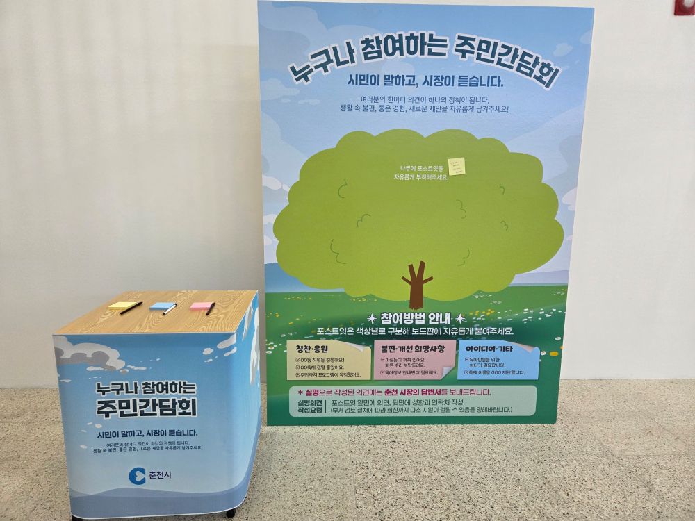 춘천시(시장 육동한)가 퇴계동과 석사동 행정복지센터 로비에 ‘마을정책나무’ 정책보드를 설치해 시민들이 직접 지역 문제를 제안하고 시정에 참여할 수 있도록 했다.