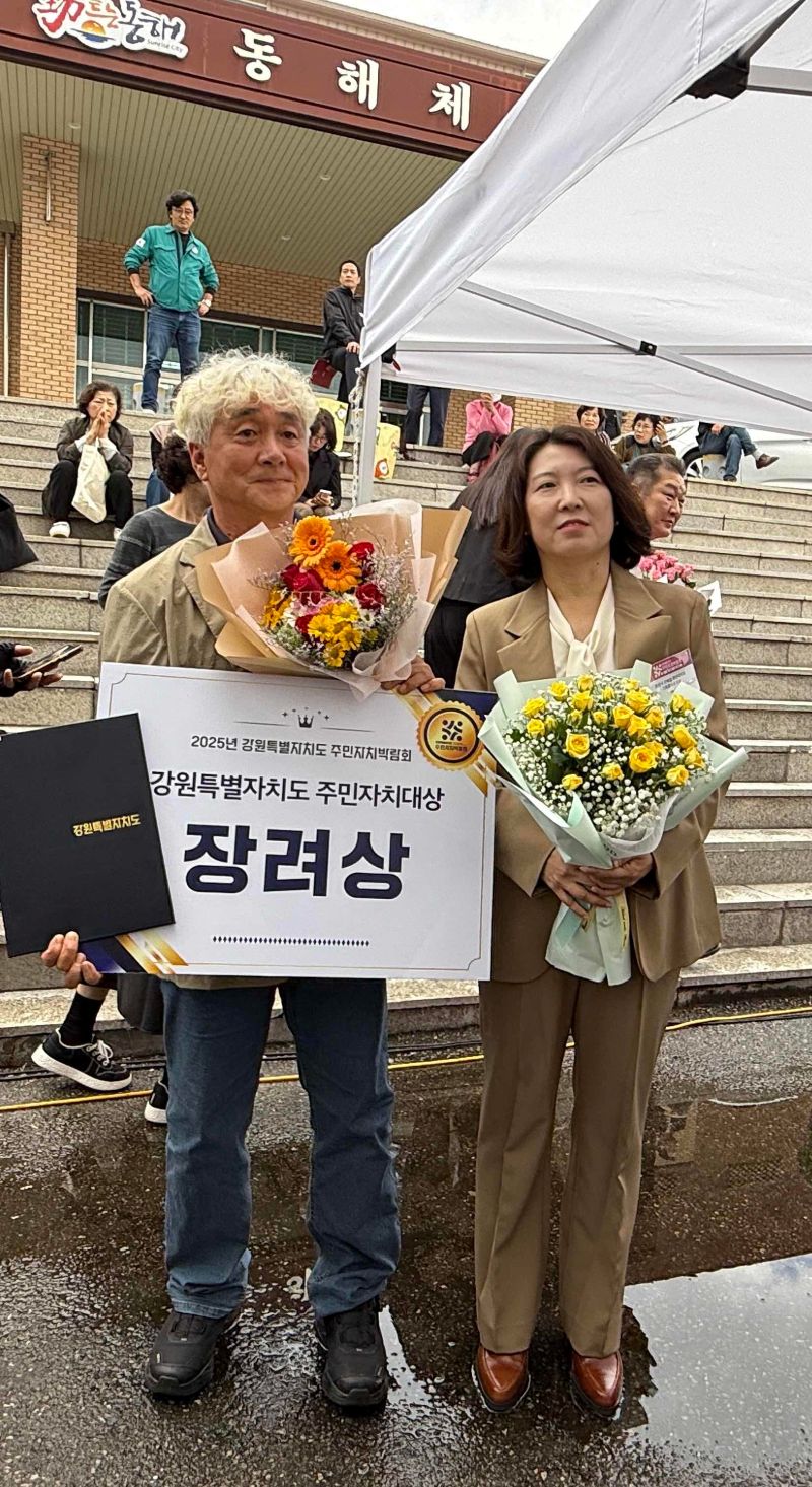 신북읍 주민자치회(회장 유규열)가 17~18일 동해웰빙레포츠타운에서 열린 ‘2025 강원특별자치도 주민자치박람회’에서 ‘율문천이 정원이 되는 순간’을 주제로 지역 특색을 살린 자치활동을 펼쳐 장려상을 수상했다.