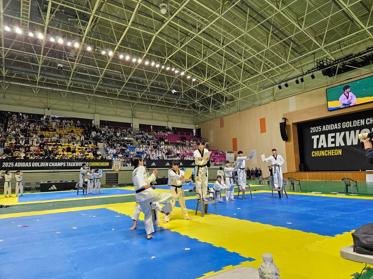 1일 열린 ‘2025 아디다스 골든챔스 태권도 춘천’이 전국 유소년 선수들의 뜨거운 열정 속에 성황리에 막을 내렸다. 이번 대회는 전국 73개 도장에서 1,200여 명이 참가했으며, 초등 1학년부터 중등 2학년까지 비전문선수를 대상으로 공인품새(개인·복식·단체전) 경기가 펼쳐졌다.