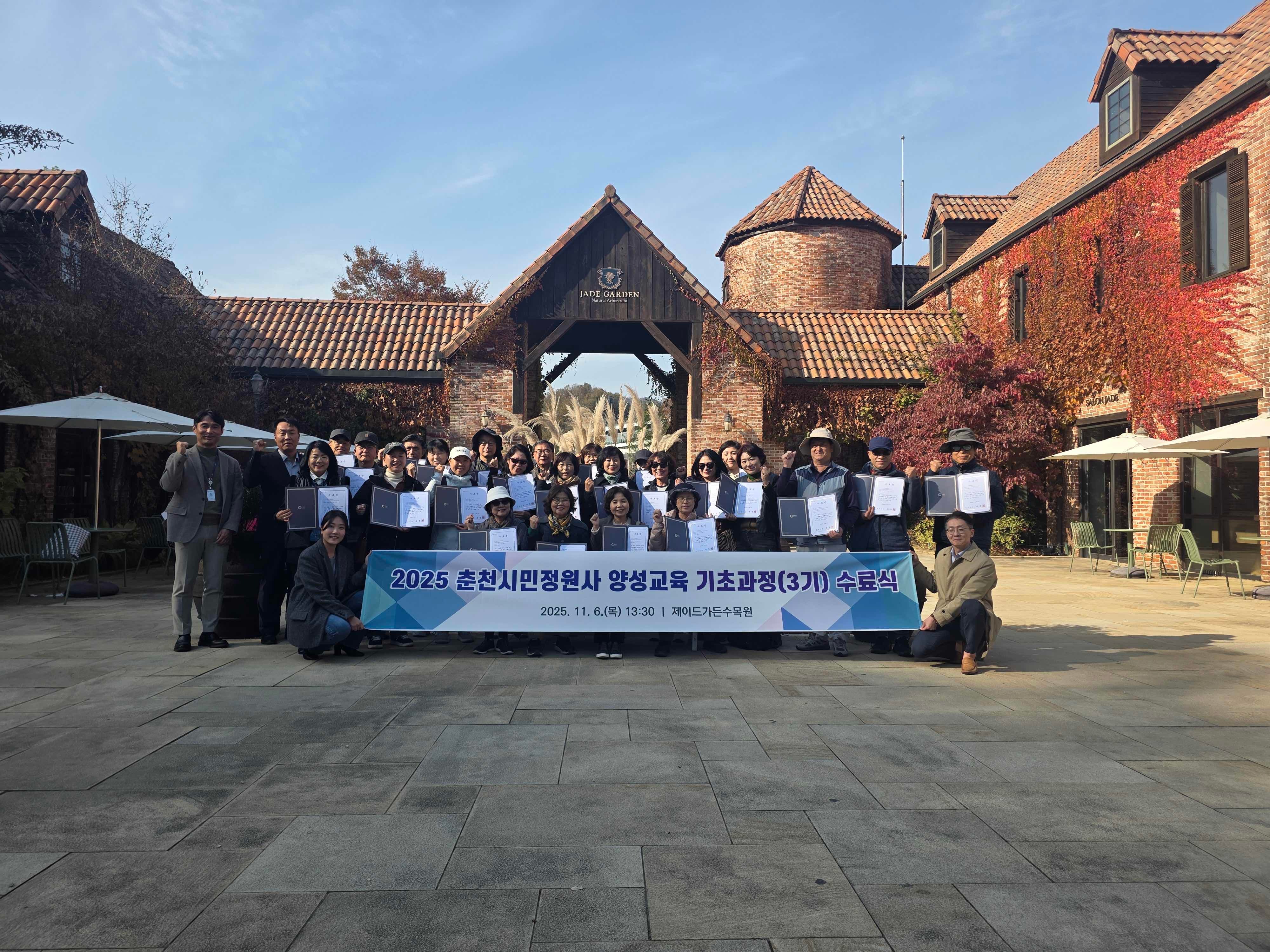 춘천시(시장 육동한)는 6일 제이드가든 수목원에서 ‘2025 시민정원사 기초과정 제3기 수료식’을 개최했다.