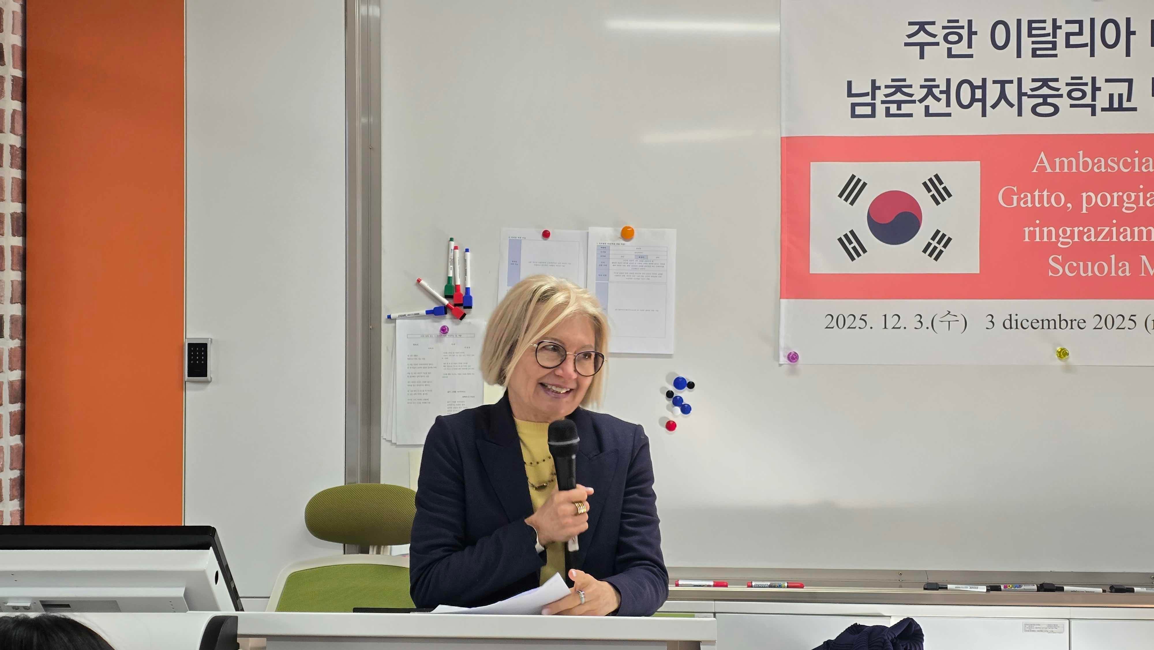 가토 대사는 ‘한국과 이탈리아의 관계’를 주제로 남춘천여중과 강원대 정치외교학과에서 문화·예술·경제 등 다양한 분야에서의 협력 사례를 소개했다.