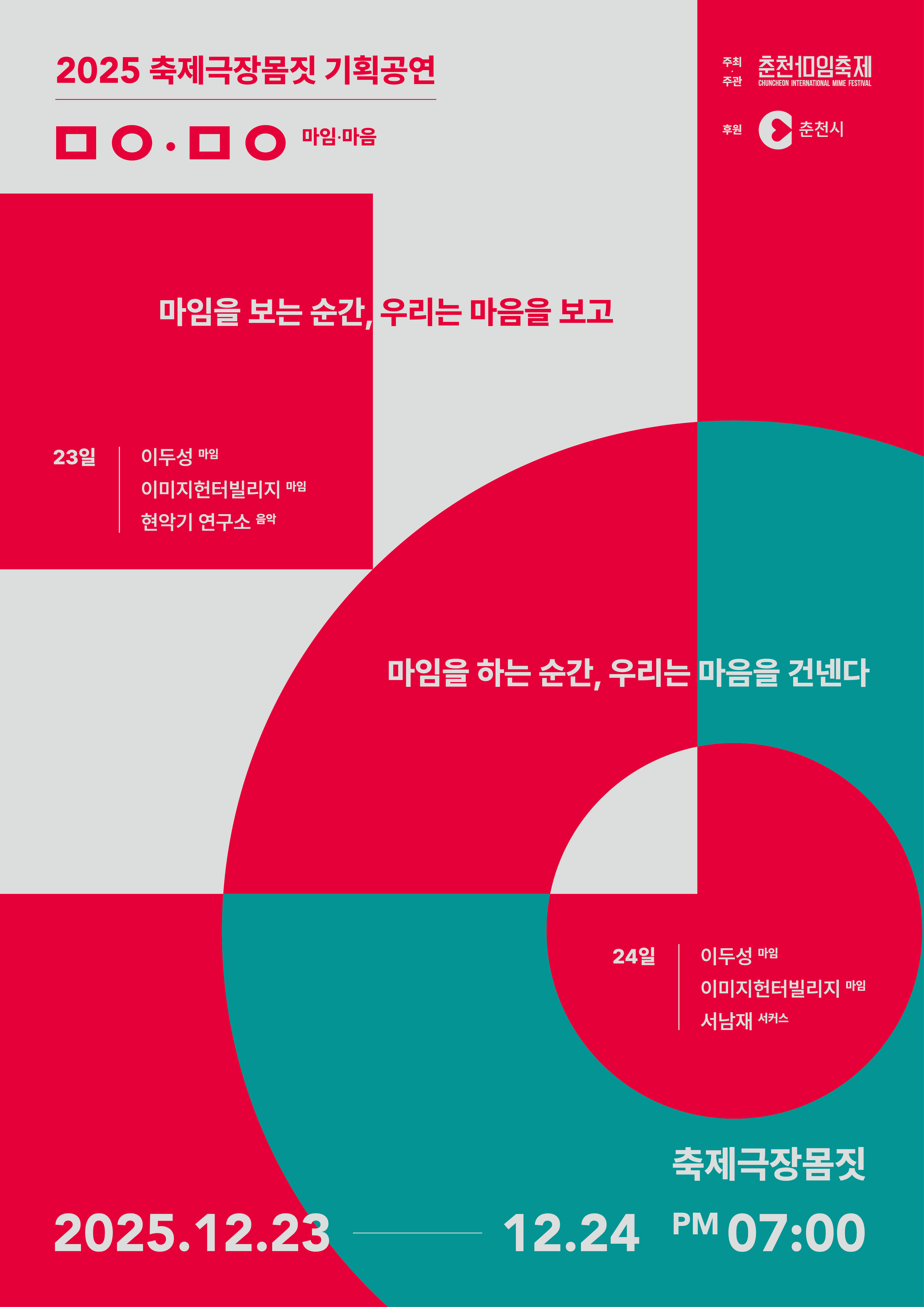 마임으로 건네는 마음의 이야기, 기획공연 ‘ㅁㅇ,ㅁㅇ’ - 춘천마임축제 기획, 24일 축제극장 몸짓서 - 마임·음악·서커스 결합한 감각 중심 무대 구성 - 이두성 예술감독 작품 포함 3개 팀 참여 |