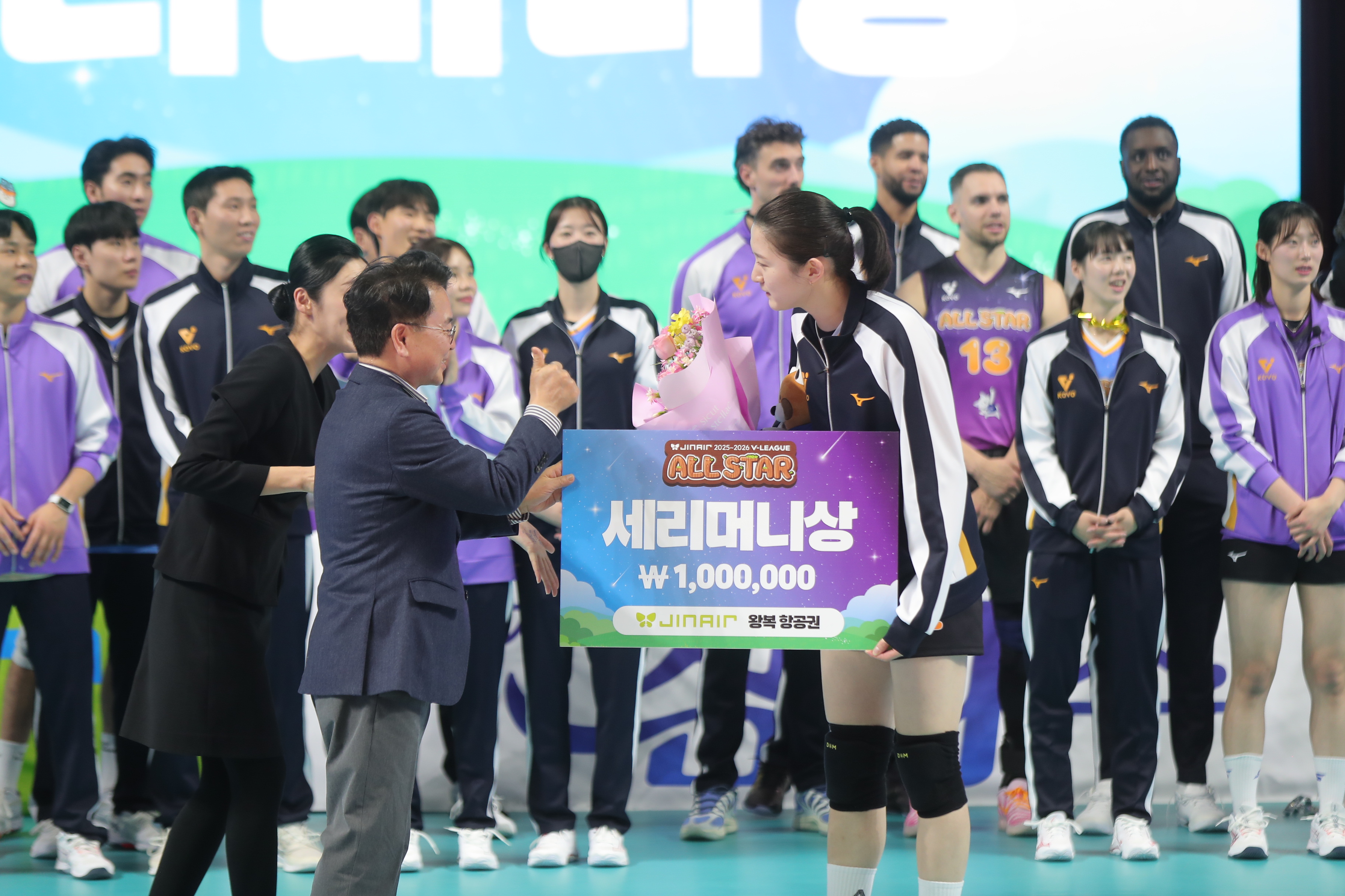 이번 올스타전은 ‘All-Star Village in Chuncheon’이라는 운영 콘셉트 아래 팬 체험 프로그램과 현장 이벤트를 함께 운영하면서 눈길을 끌었다. 경기에는 김다인(현대건설), 신영석(한국전력) 등 리그를 대표하는 스타들이 화려한 플레이와 재치 있는 세리머니로 팬들에게 잊지 못할 추억을 선사했다. 지난 시즌 흥국생명 통합우승을 이끌고 은퇴한 김연경도 감사패 수상을 위해 현장을 찾았다.