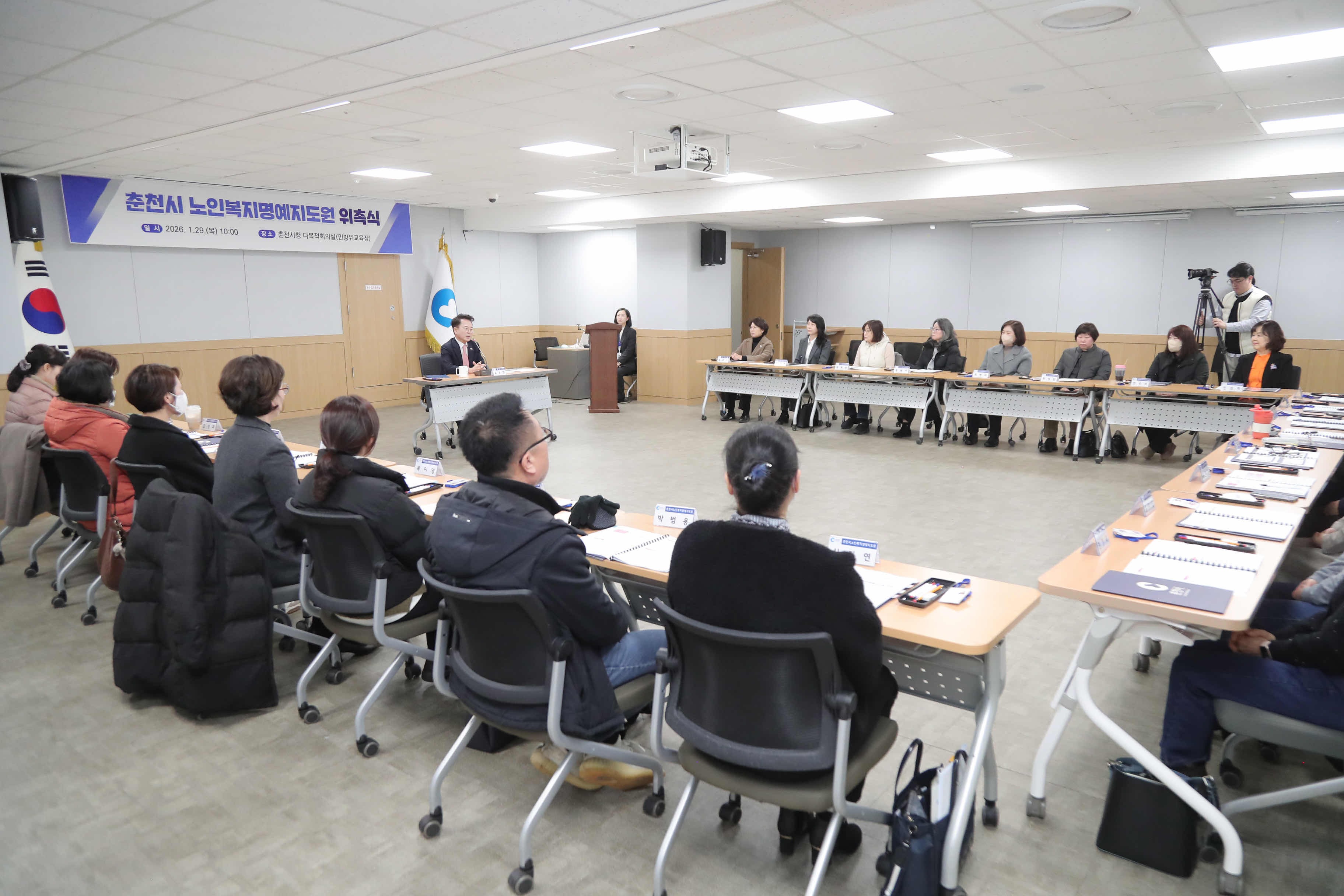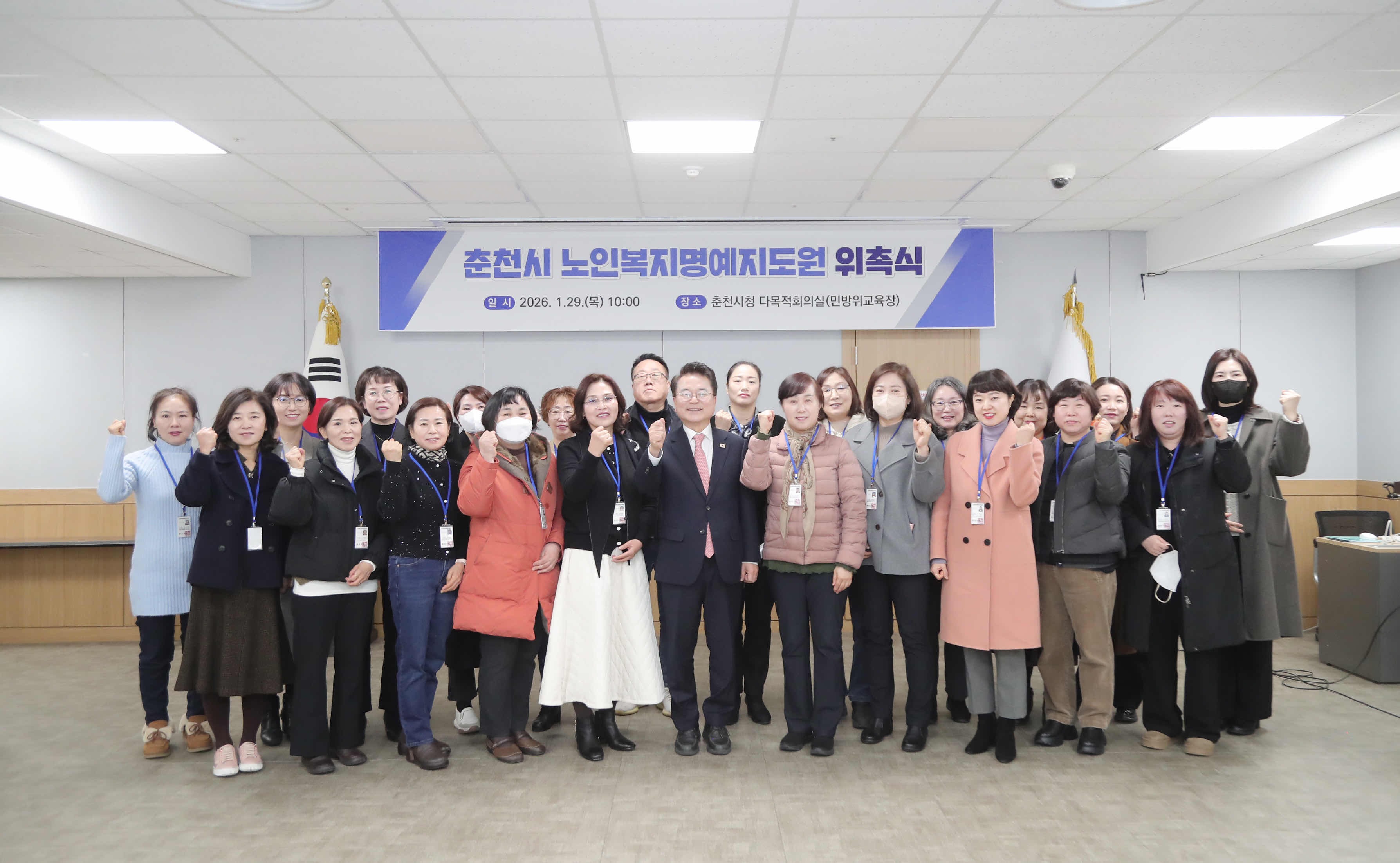 춘천시, 강원도내 최초 ‘노인복지명예지도원’ 조례 제정 - 29일 춘천시 노인복지명예지도원 위촉식 가져 - 요양시설 입소 어르신 인권 보호·학대 예방 전담 - 초고령사회 대응, 노인 인권 보호 제도화 본격 추진 |