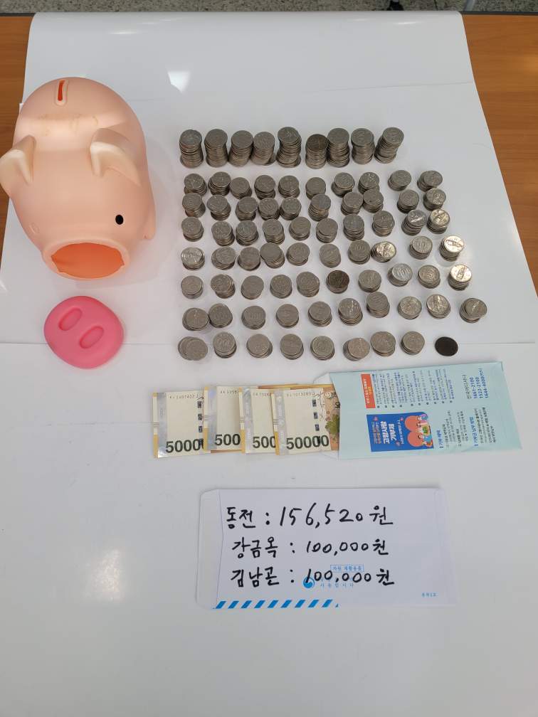 효자3동 주민센터 앞에 놓인 돼지저금통 '훈훈’ - 주민센터 앞에서 발견된 현금 15만6,520원 - 자율방범대원 기부 동참으로 나눔 이어져 |