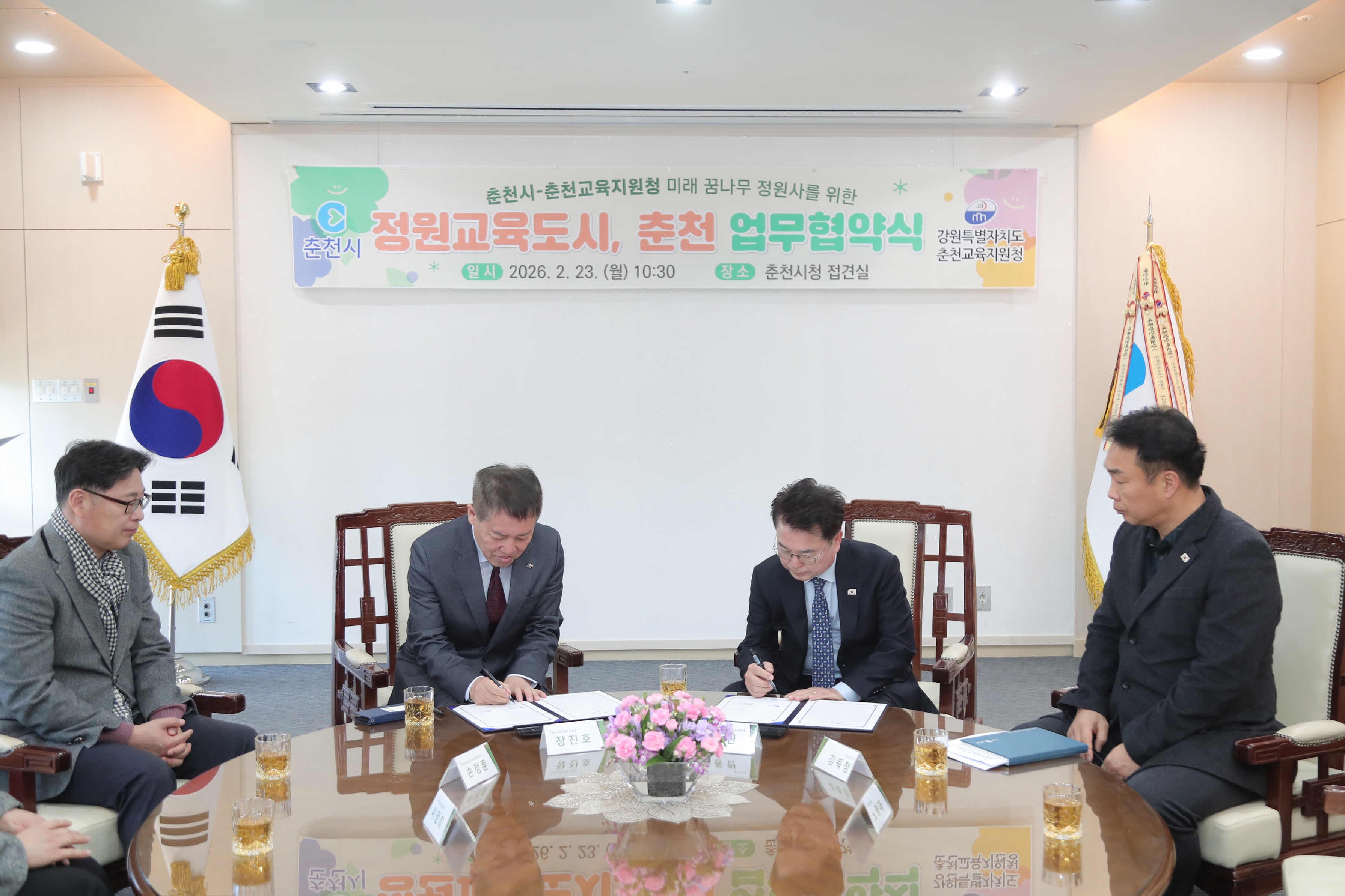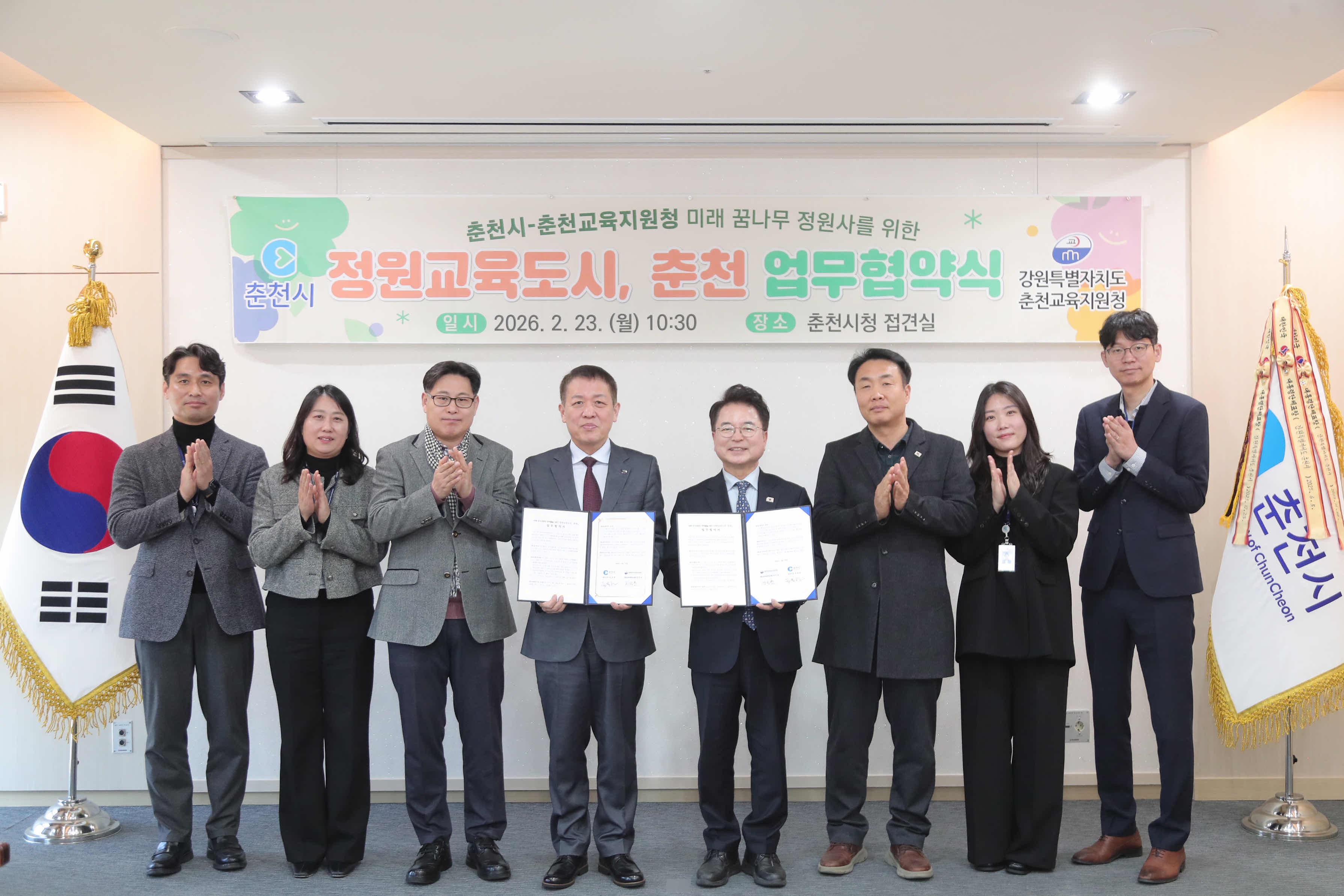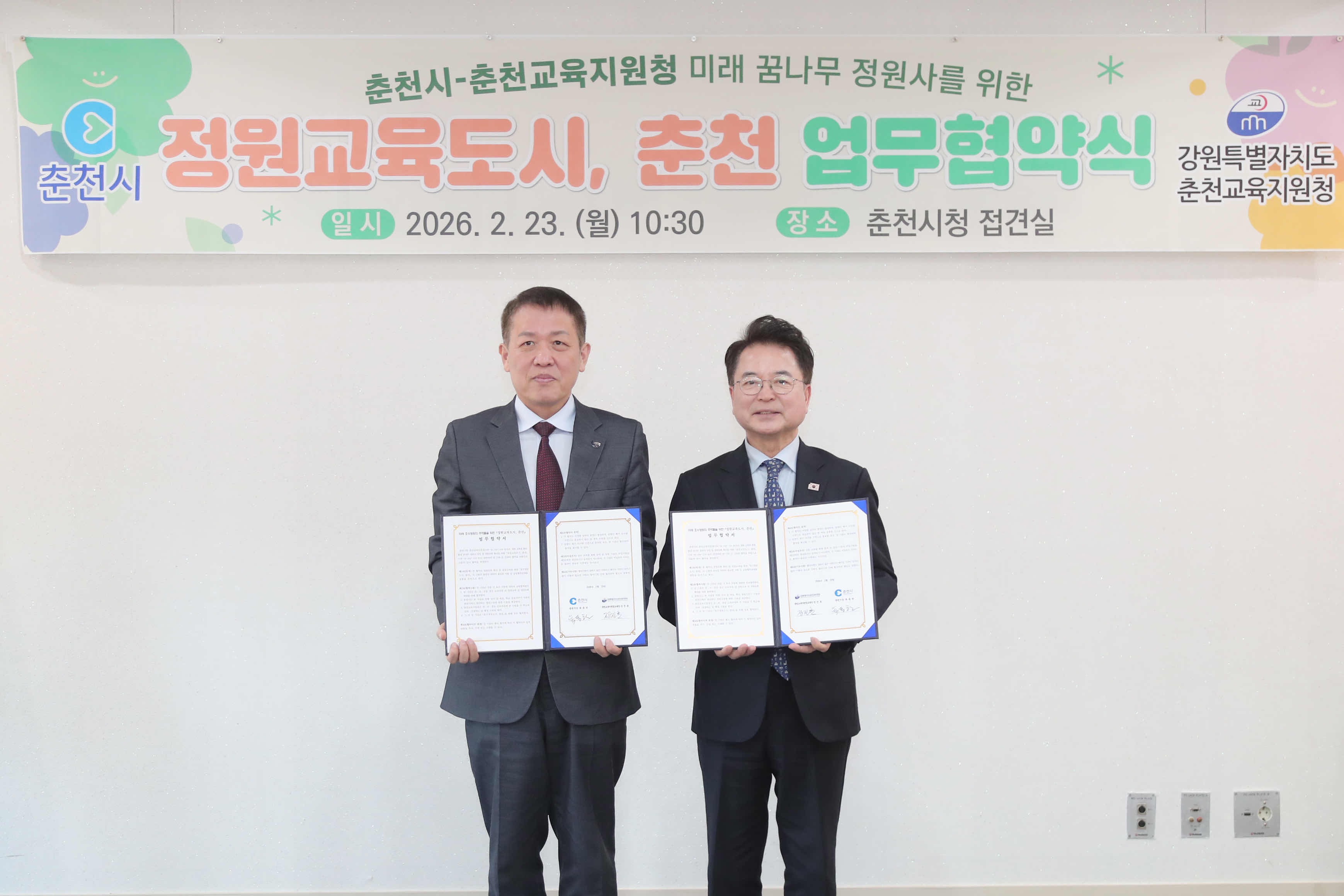 춘천시(시장 육동한)와 춘천교육지원청(교육장 장진호)이 ‘정원교육도시 춘천’ 조성을 위해 손을 맞잡았다.