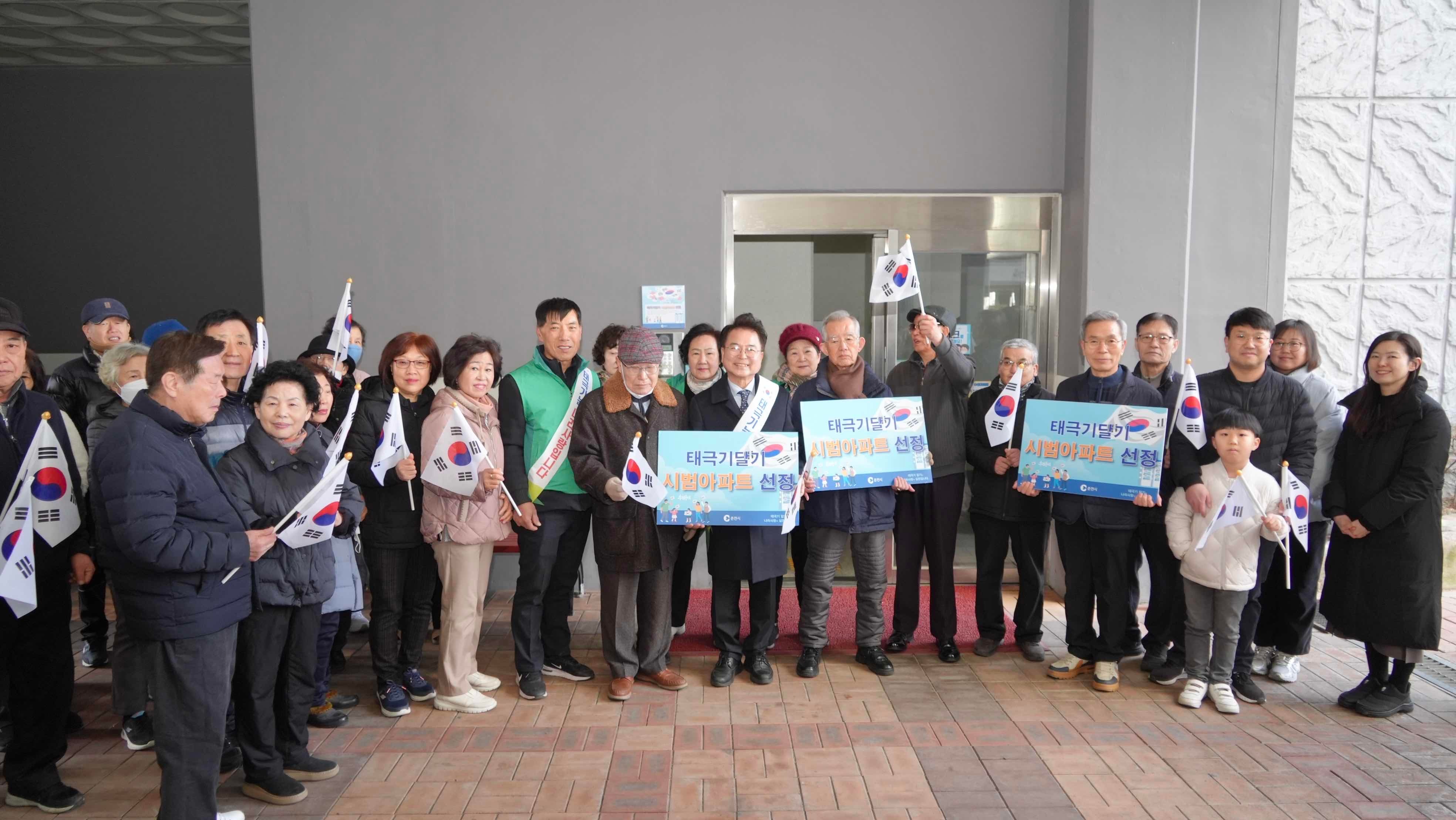 춘천시, 태극기 달기 릴레이 현판식 본격 시작 - 읍·면·동별 시범아파트·마을 지정 릴레이 추진 - 태극기 게양률 50% 목표… 생활권 중심 확산 - 보급 확대·판매 활성화 등 다각적 추진 병행 |