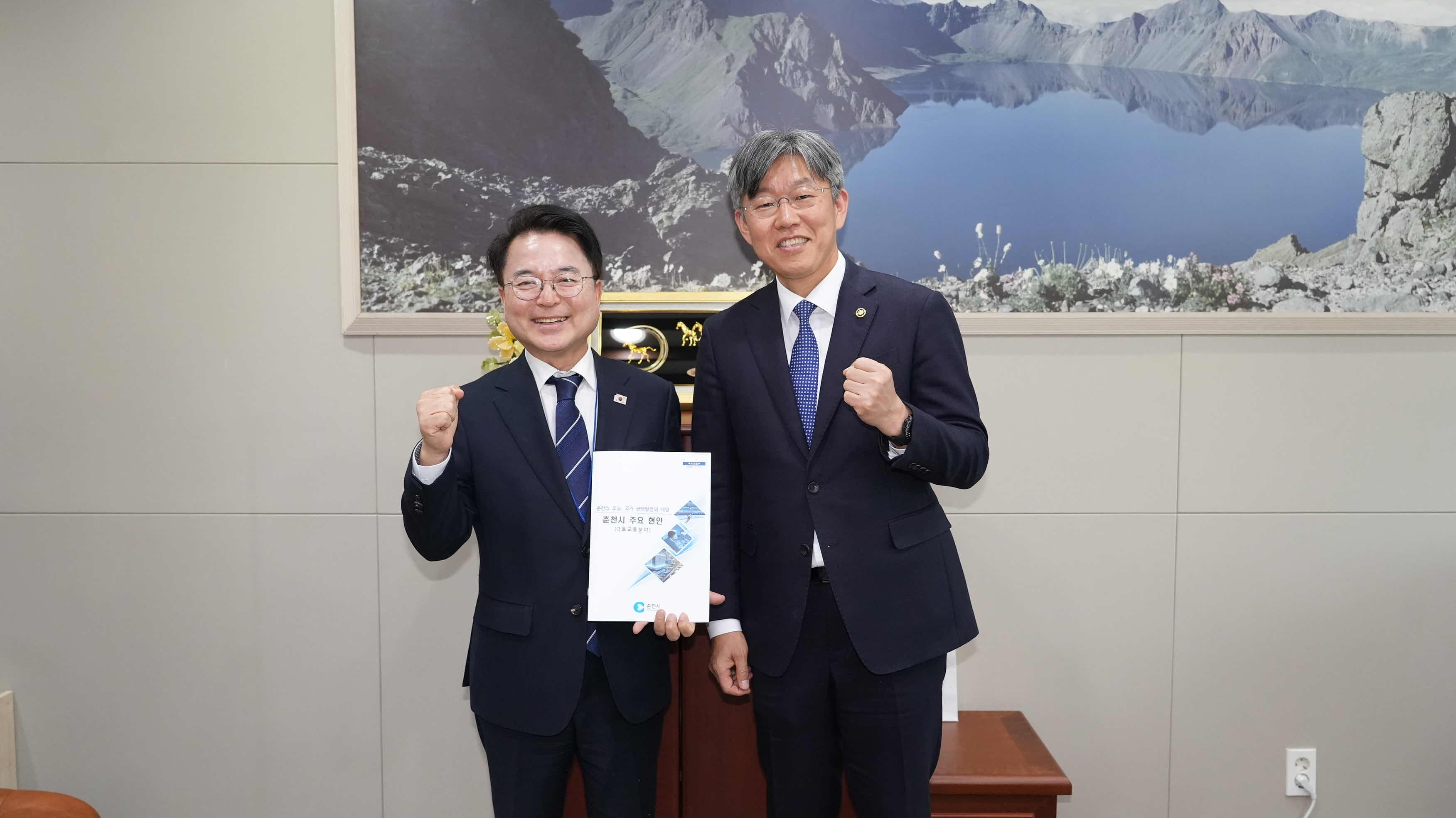 이날 오후 국토교통부를 방문해서는 김이탁 1차관과 정의경 국토도시실장을 만나 K-AI시티 선도사업과 강촌 도시재생사업, 은퇴자마을 조성사업 필요성에 대해 설명했다. 김이탁 1차관은 이 자리에서 “AI시티는 매우 전문기술이 접목된 만큼 행정과 전문가 간의 긴밀한 협력체계가 매우 중요하다”며 “은퇴자마을의 경우 정부의 고령화 주거정책의 중요한 브랜드로 키우려고 하는 만큼 춘천이 앞서나가는 시정구상이나 방향에 대해 국토부에 지속 공유해주길 바란다”고 말했다.