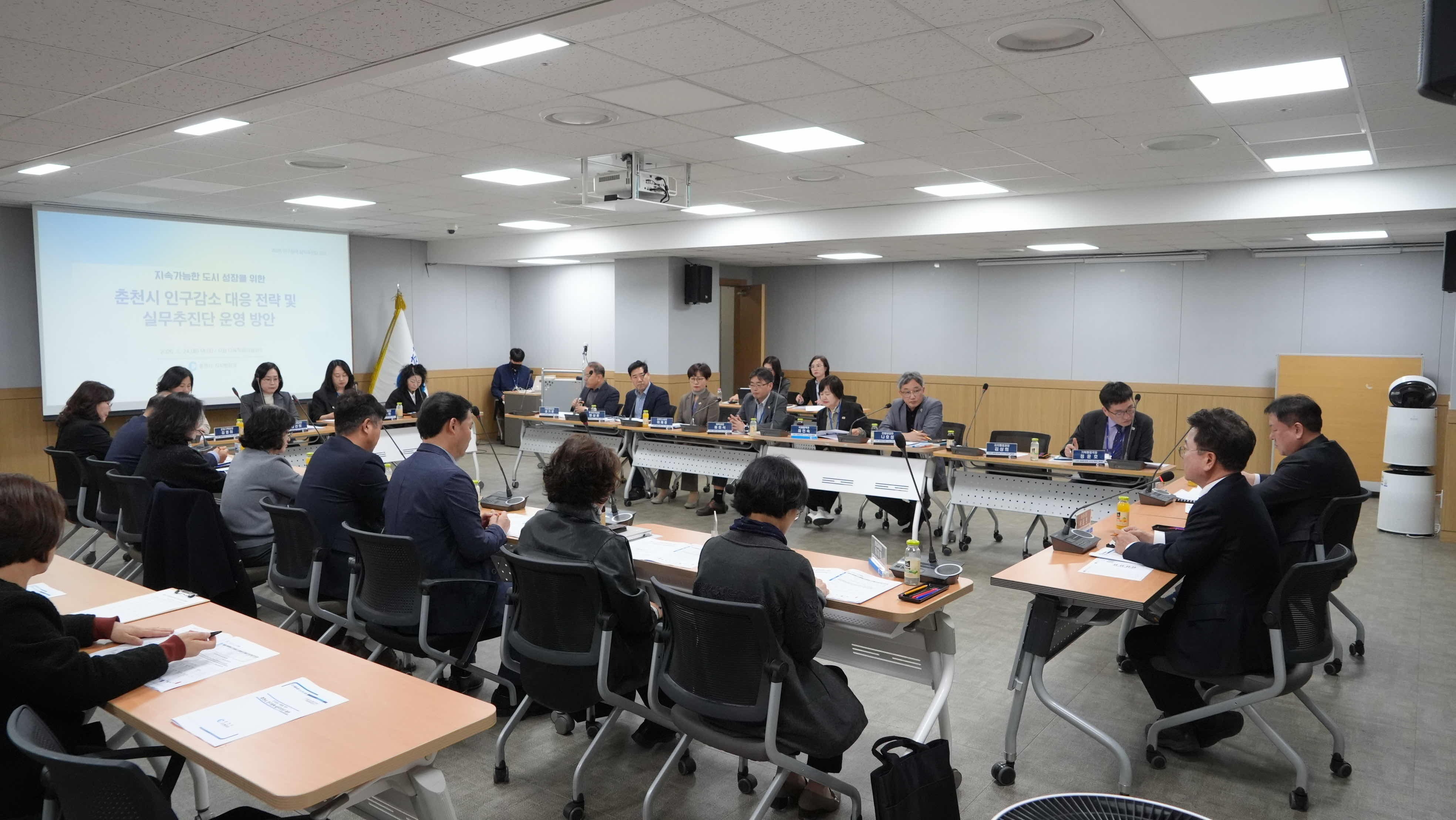 춘천시는 24일 시청 다목적회의실에서 ‘범부서 인구정책 실무추진단’의 첫 회의를 가졌다. 이번 실무추진단 구성은 인구 문제를 특정 부서의 업무로 한정하지 않고 시정 전반의 역량을 결집해 대응하겠다는 의지를 담았다. 부시장을 단장으로 출산·양육·교육·청년·일자리·고령층 지원 등 인구와 직결된 19개 부서가 참여한다.