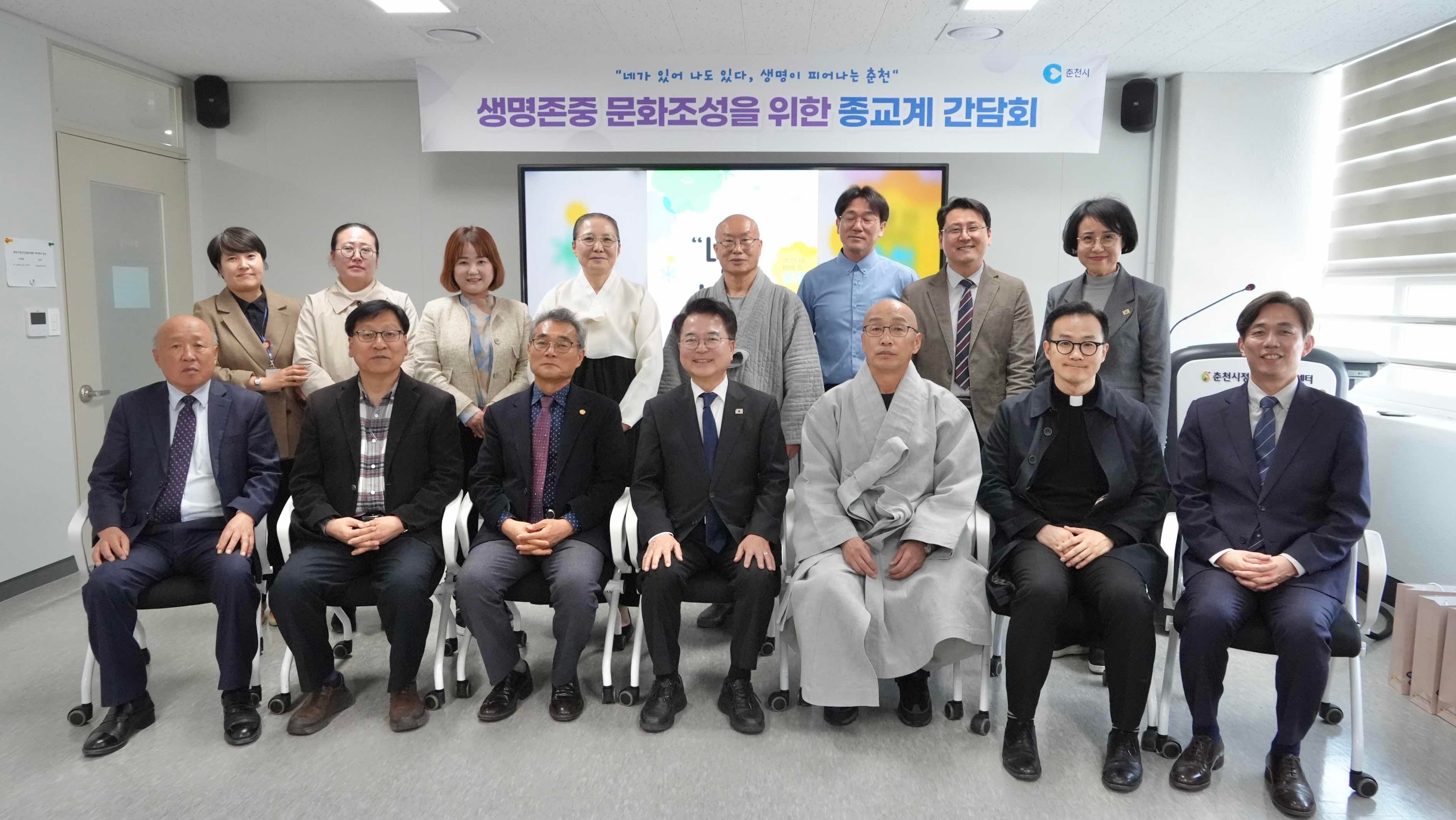 ‘네가 있어 나도 있다’ 춘천시, 종교계와 자살예방 본격화 - 6대 종교 대표자 간담회… 생명존중 문화 확산 방안 구체화 - 위기신호 조기 발견부터 연계까지… 지역 밀착 대응체계 강화 - 생명존중안심마을 확대·범시민 캠페인 ‘춘천형 모델’ 추진 |