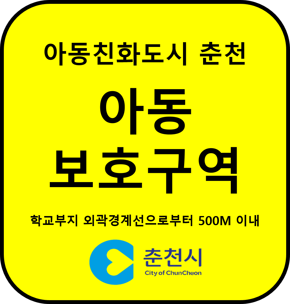 춘천시청이(가) 창작한 춘천시 아동보호구역 4곳 추가 지정 저작물은 공공누리 "출처표시+상업적 이용금지+변경금지" 조건에 따라 이용할 수 있습니다.