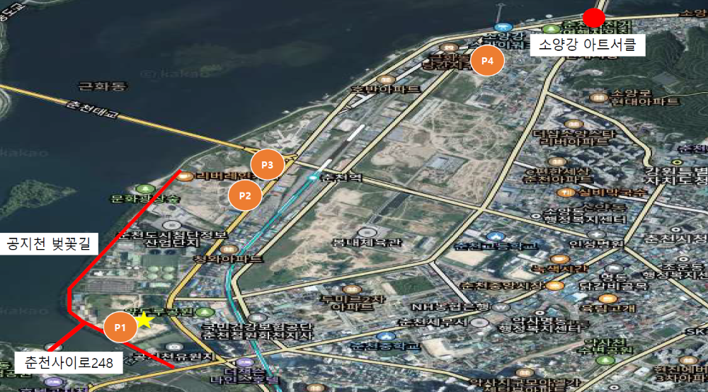 P1 | 근화동 678(춘천사이로) | 약 500면 | 일반차량/관광버스 |