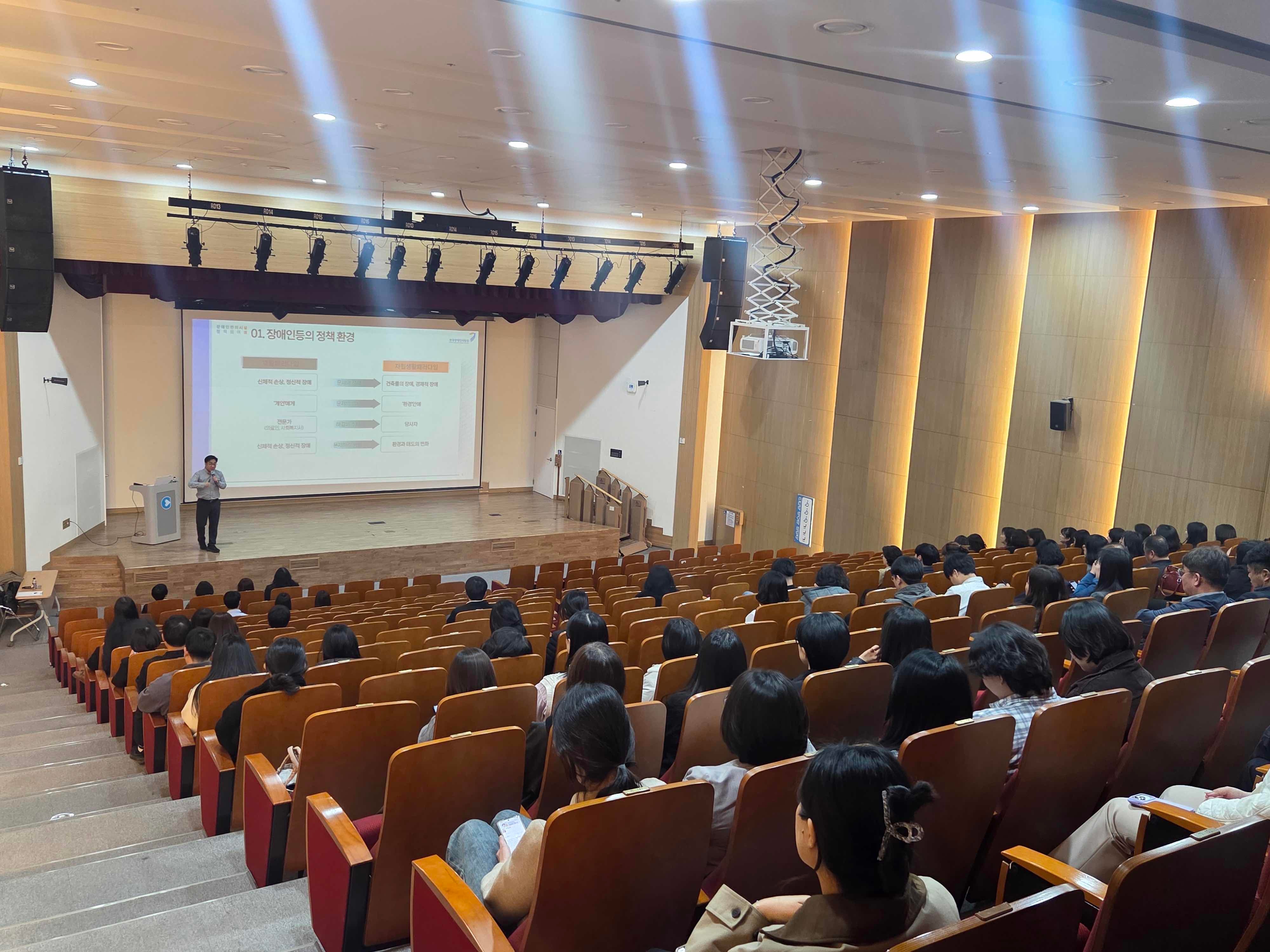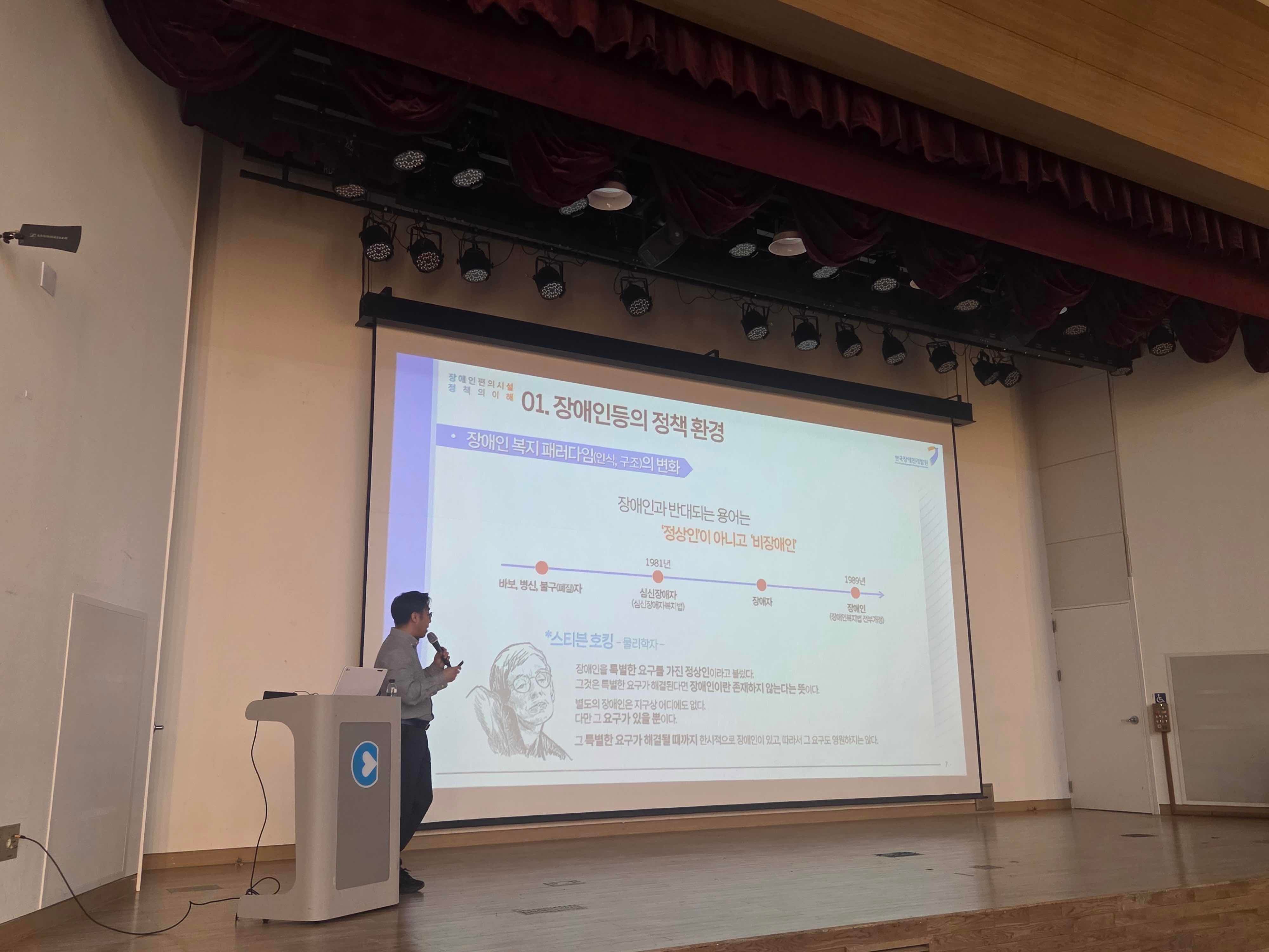 이날 강연은 안성준 한국장애인개발원 유니버설디자인환경부장 강사가 유형별 유니버셜 디자인의 구체적인 사례를 통해 특정 대상이 아닌 ‘누구나’ 편리하게 이용할 수 있는 도시 환경 조성의 필요성을 강조했다. 또 장애인 편의시설 설치 기준과 운영 방향 등 현장 실무에 바로 적용 가능한 내용을 중심으로 공직자의 정책 이해도를 높이는 데 중점을 뒀다.