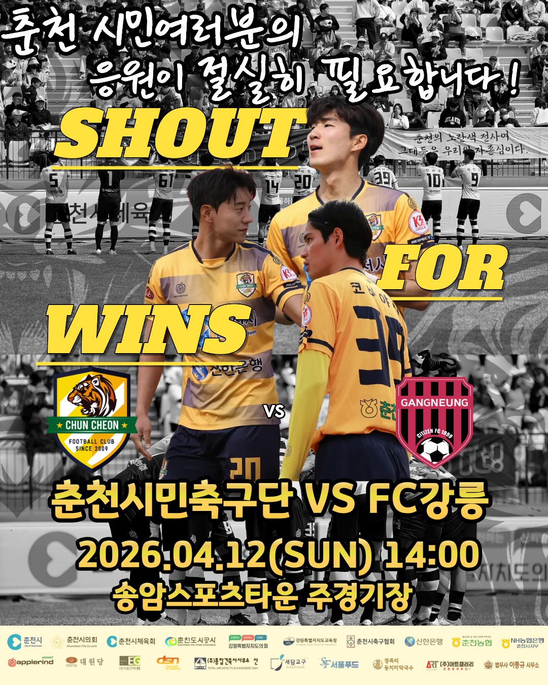 춘천시민축구단은 오는 12일 오후 2시 송암스포츠타운 주경기장에서 FC강릉을 상대로 2026시즌 K3리그 두 번째 홈경기를 치른다. 이번 경기는 홈 개막전 승리의 기세를 이어 시즌 초반 상승 흐름을 이어갈 중요한 경기다.또한 춘천시민축구단은 지난 8일 전국체육대회 강원도 대표 선발전에서 FC강릉과 맞붙어 승부차기 끝에 아쉽게 패하면서 이번 경기에서 더욱 집중력 있는 경기력을 바탕으로 좋은 결과를 거두겠다는 각오를 다지고 있다.