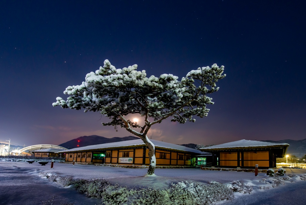 사진=김주형. 눈 내리는 문학촌의 밤. 2021 춘천관광사진전