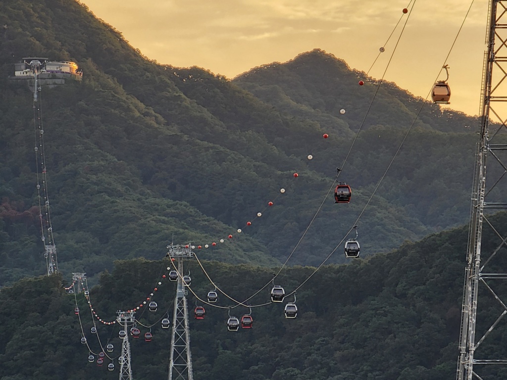 사진=장미림. 노을빛에 매달린 케이블카. 2025 춘천관광사진전