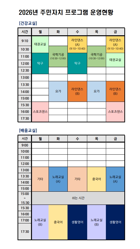 2026년 강남동 주민자치 프로그램 운영 사항을 아래와 같이 안내드리오니,