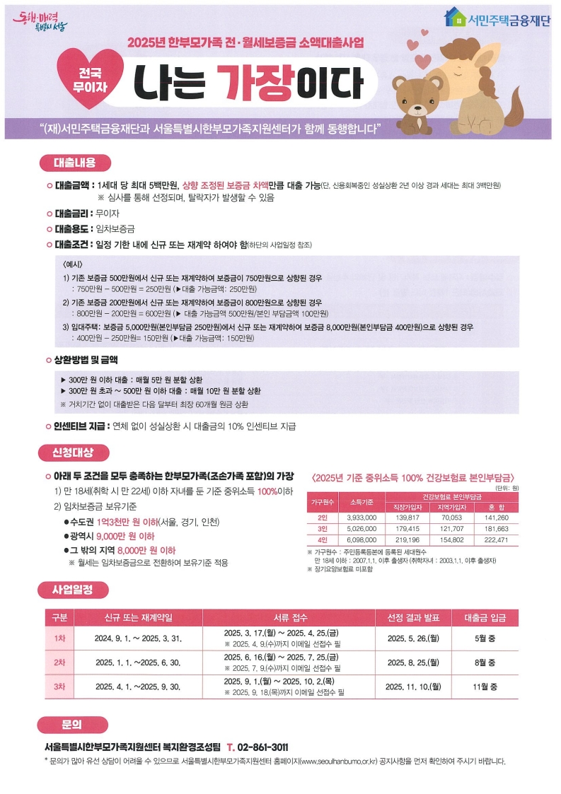 2025년 1차 한부모가족 주거자금 소액대출연계 '나는 가장이다’ 안내