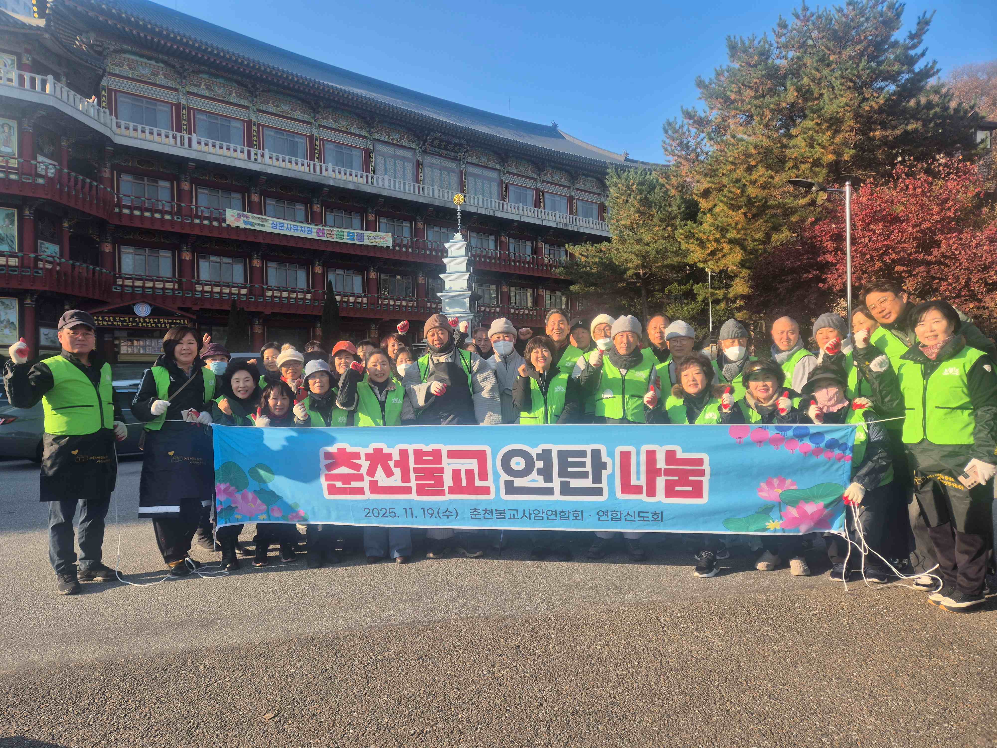 춘천불교연합회·연합신도회(회장 김윤호)는 25년 11월 19일 후평1동 저소득 에너지 취약계층 8가구에 연탄 3,000장을 후원하고 직접 전달했다.
