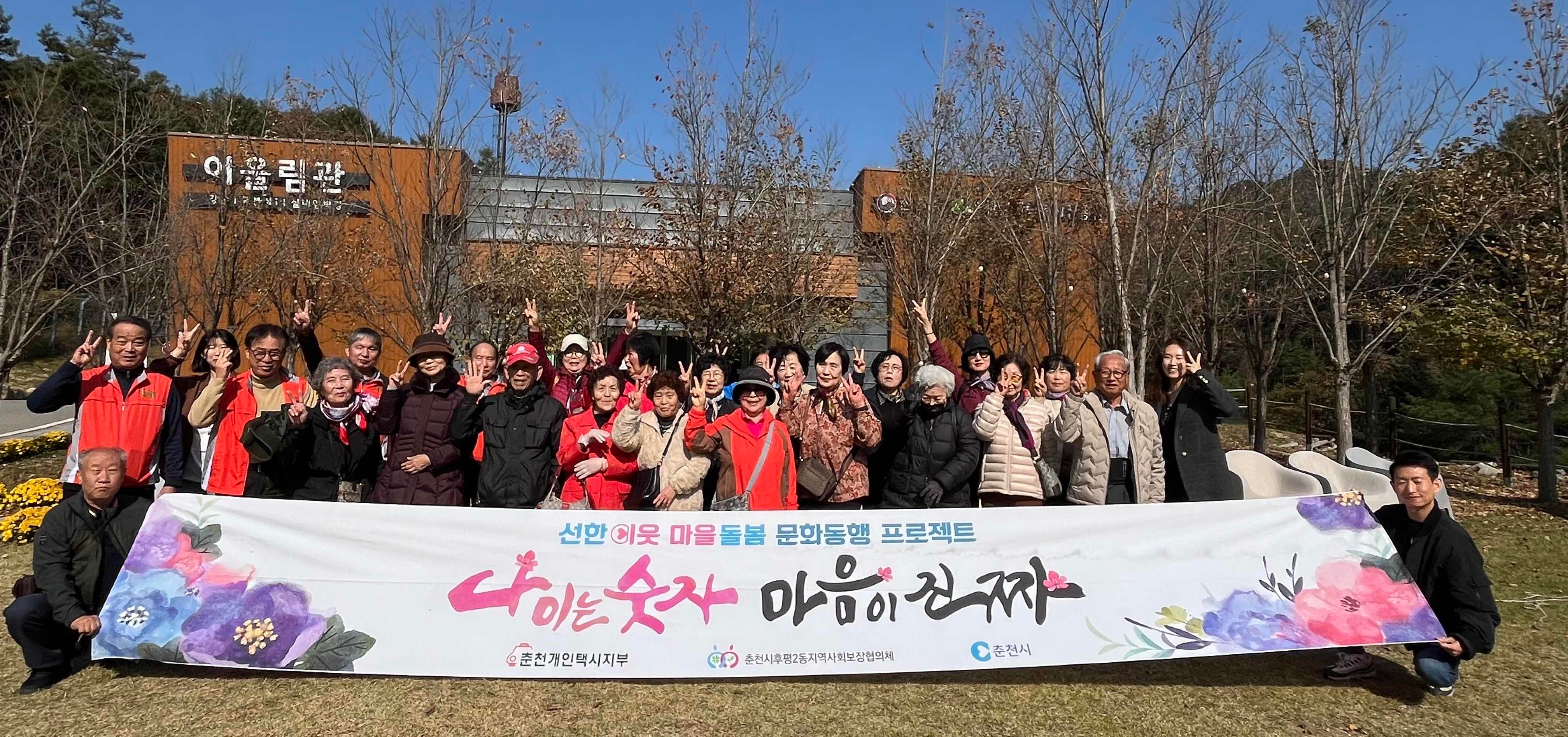 후평2동행정복지센터(동장 마화선)와 후평2동지역사회보장협의체(위원장 박정임)는 마을복지계획사업의 일환으로 29일 바깥 외출이 어려운 관내 홀몸 어르신들을 모시고 국립춘천숲체원에서 나들이를 진행하였다. 이번 나들이는 어르신 12명과 지역사회보장협의체 위원들이 1:1 매칭되어 진행되었으며, 협약을 통해 개인택시춘천시지부(지부장 박상원) 봉사단이 어르신들의 이동을 지원하였다.