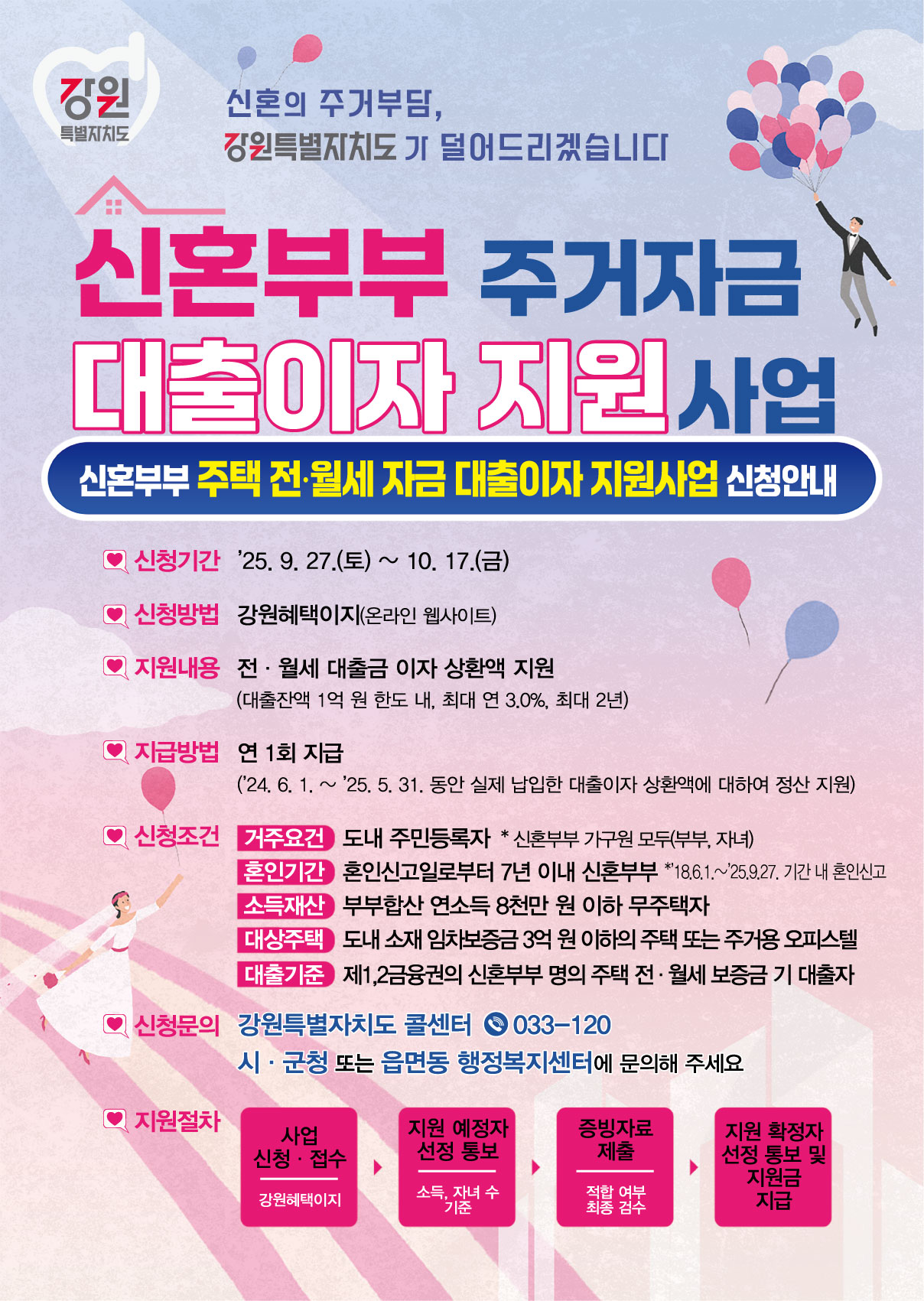 2025년 신혼부부 주거자금 대출이자 지원사업(3차) 모집 안내