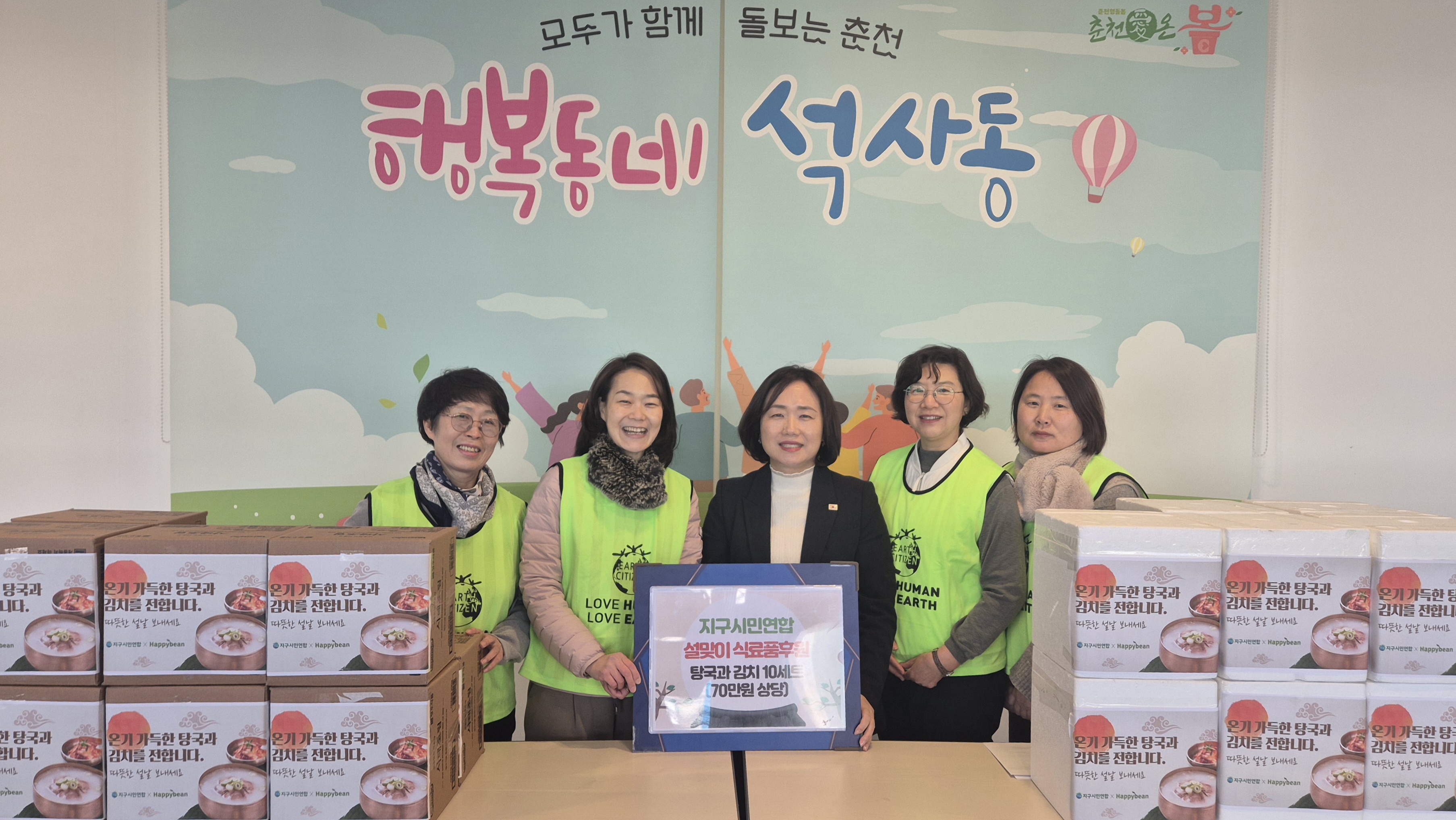 지구시민연합 강원지부(지부장 신미용)는 6일 석사동행정복지센터(동장 조영주)를 방문해 석사동 관내 취약계층을 위해 탕국과 김치 10세트(70만원 상당)를 전달했다.