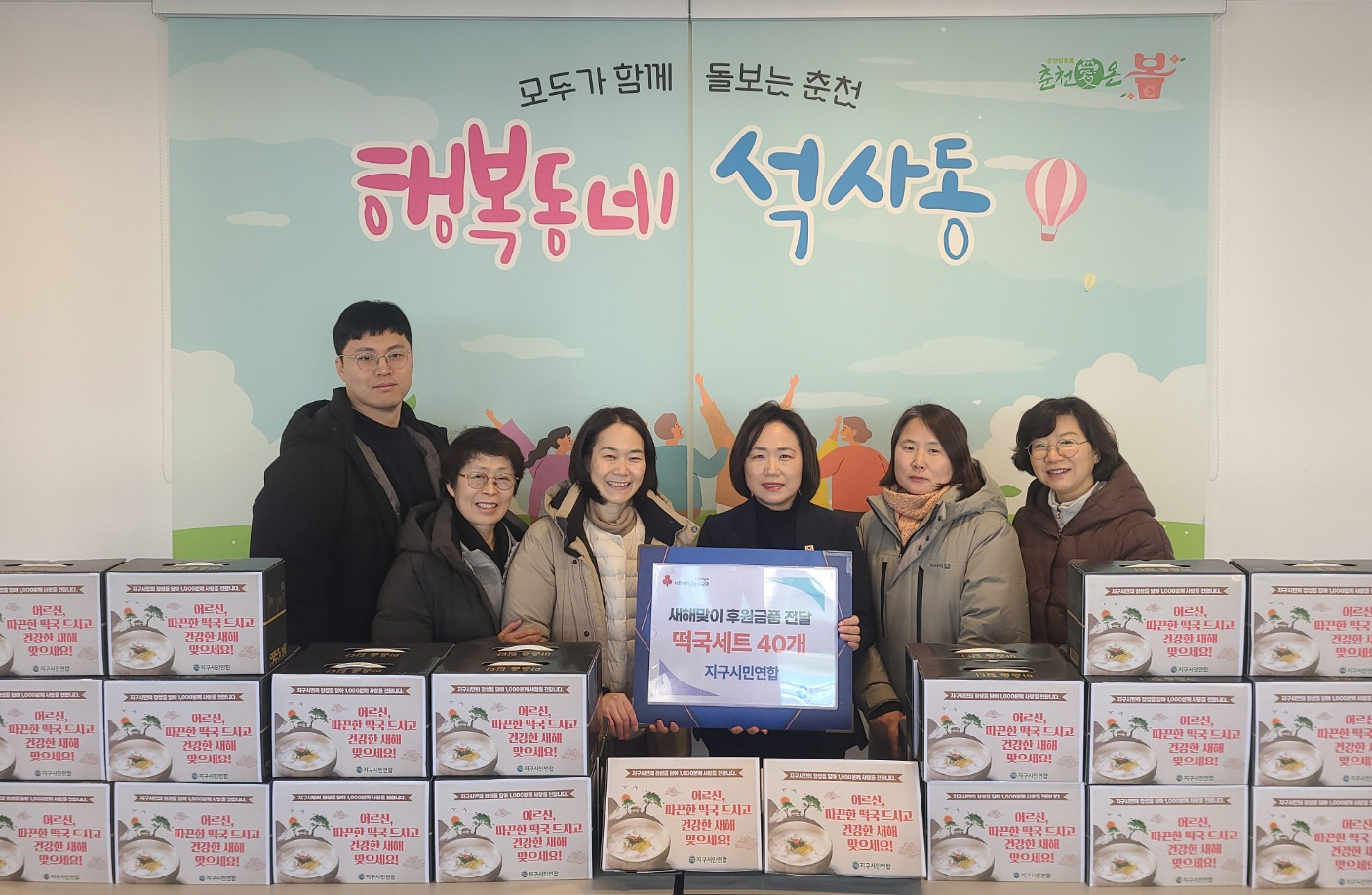 지구시민연합 강원지부(지부장 신미용)는 14일 석사동행정복지센터(동장 조영주)를 방문해 2026년 새해를 맞아 석사동 관내 취약계층을 지원하기 위한 떡국세트 40개(50만원 상당)를 전달했다.