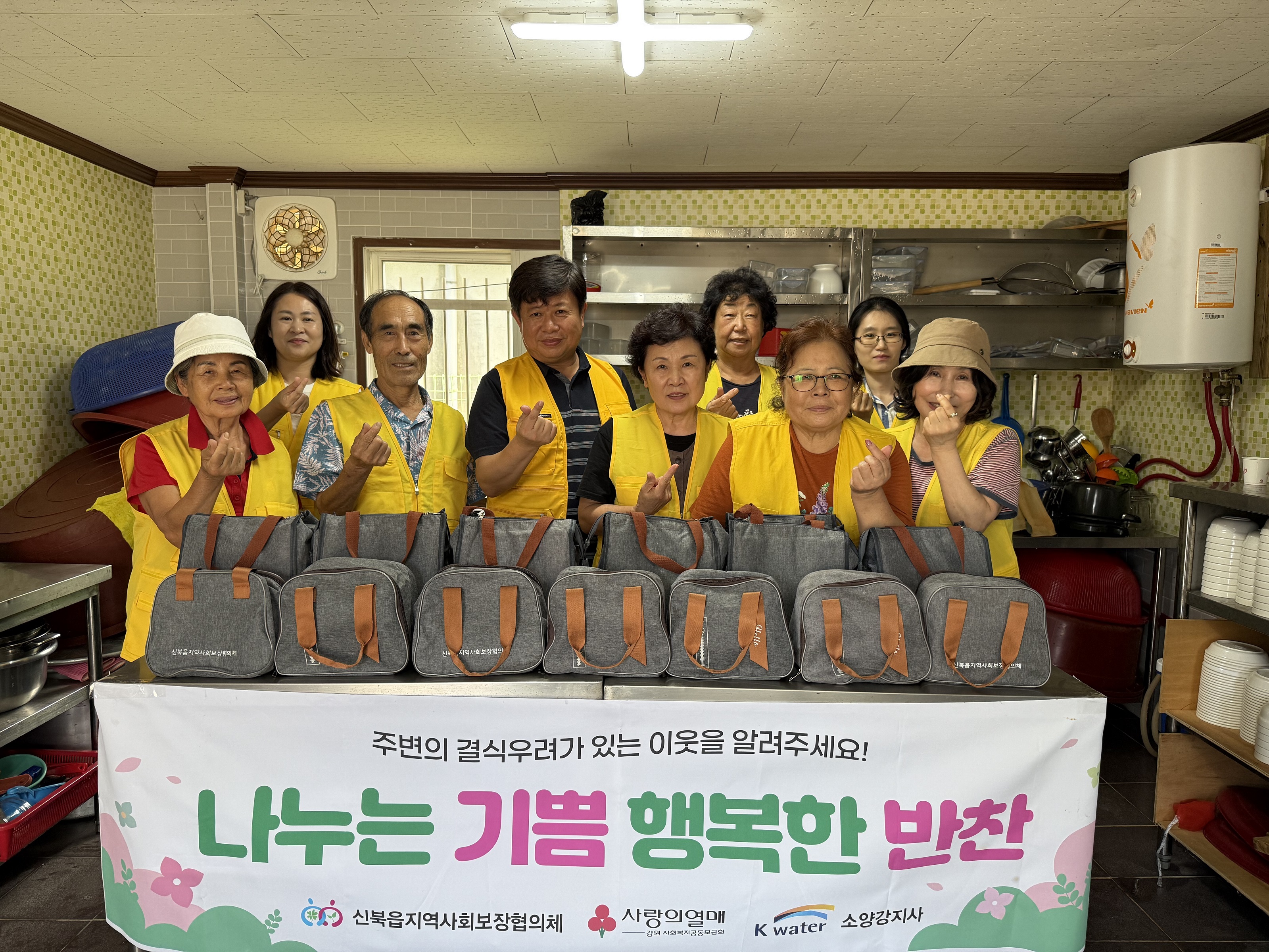 신북읍 지역사회보장협의체(위원장 김신림)는 25일 강원사회복지공동모금회와 K-water 소양강댐지사의 후원을 받아 신북읍 행정복지센터(읍장 김신)에서 직접 만든 반찬을 독거노인 및 저소득가정 등 41가구에 전달했다.