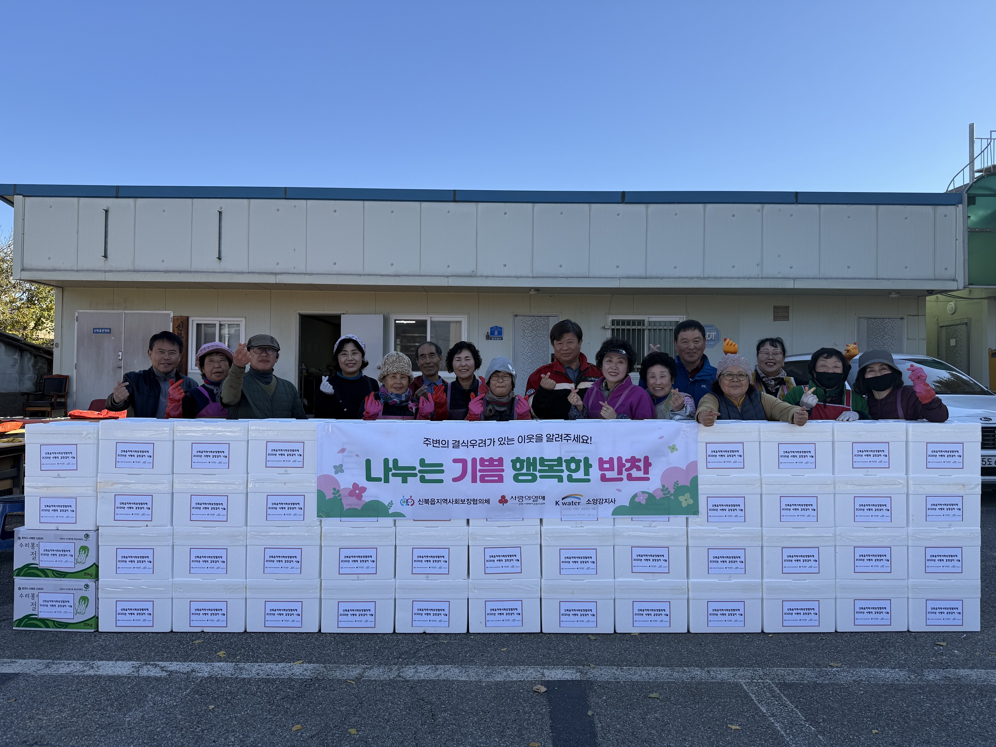 신북읍 지역사회보장협의체(위원장 김신림)는 10일 강원사회복지공동모금회와 K-water 소양강댐지사의 후원을 받아 신북읍 행정복지센터(읍장 김신)에서 윤일숙 육동한 춘천시장 부인이 참여한 가운데 김장김치 500kg을 직접 담가 독거노인 및 소외된 이웃 등 41가구에 전달했다