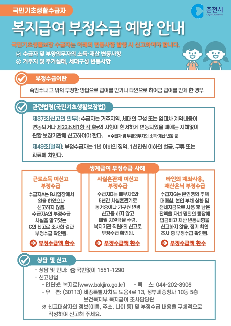국민기초생활수급자 복지급여 부정수급 예방 안내